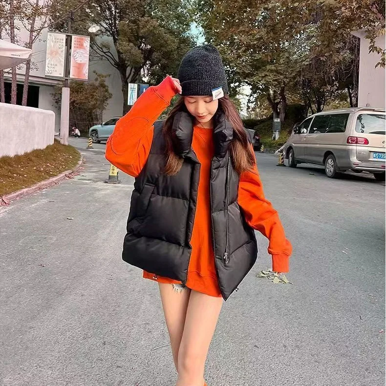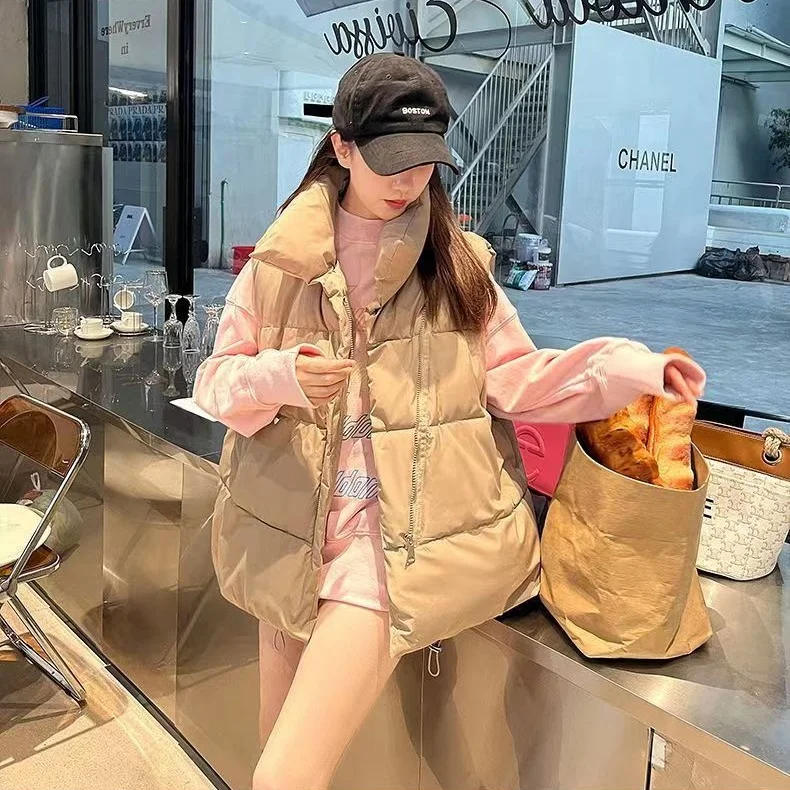 Women New Cotton Liner Waistcoat Stand Neck Zipper Pocketed Autumn Winter Lady Fashion Vest Coats