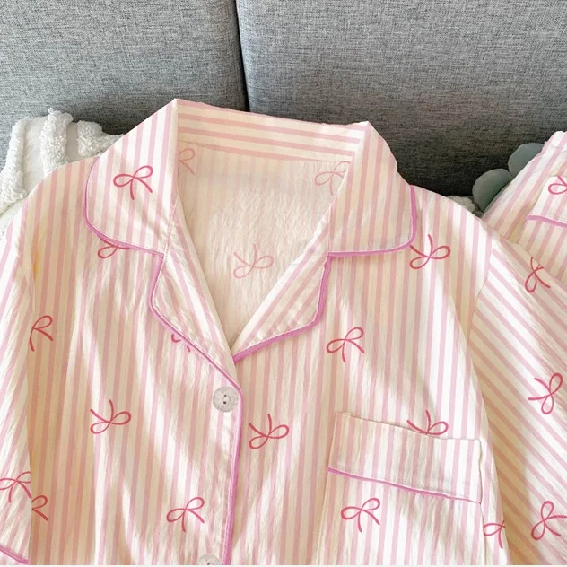 Lady Three Pieces Soft Sleepwear Lapel Collar Buttons up Shirt Top Printed Home-wear Bath Suit Spring Summer Casual Pajamas