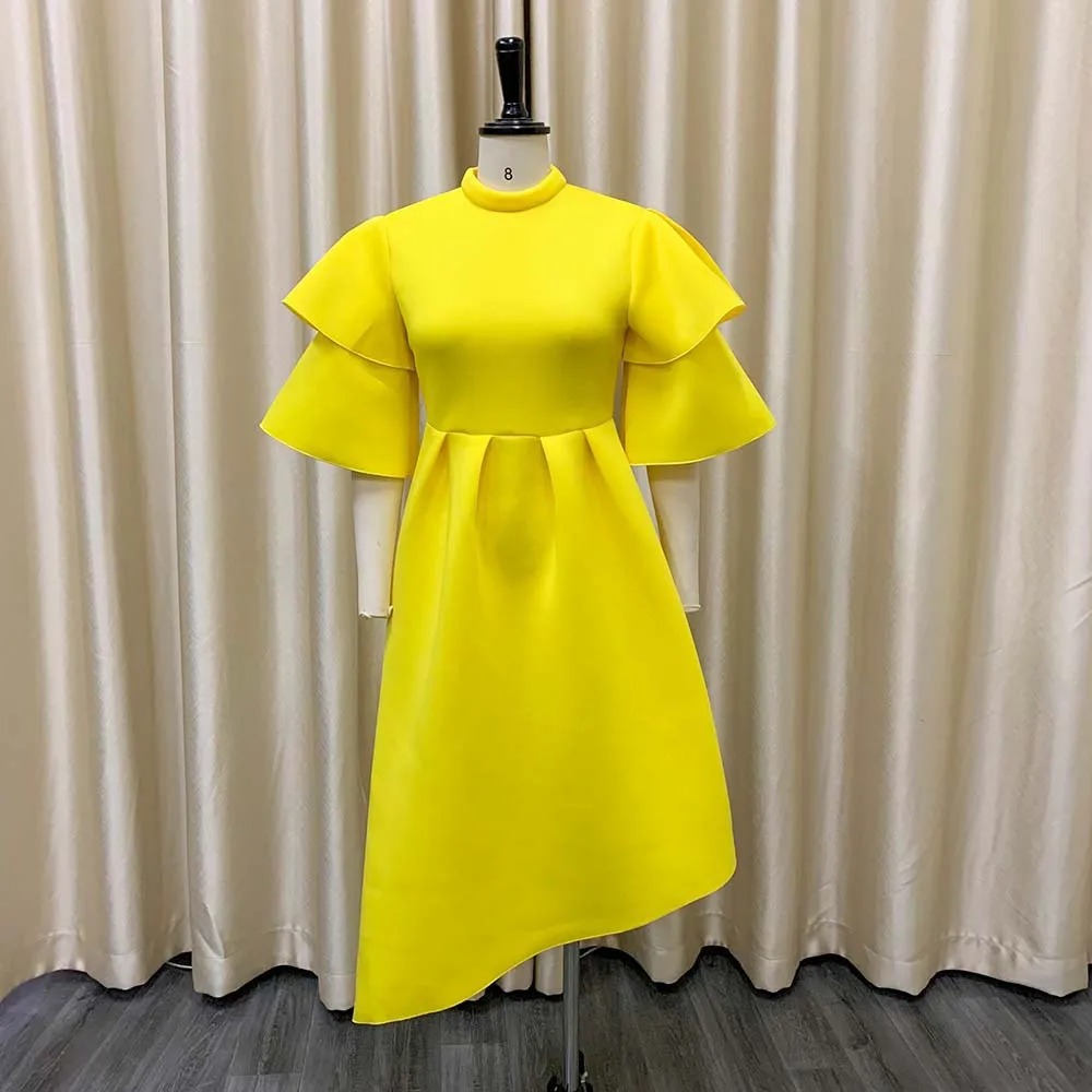 Irregular Women Summer Party Dress Plus Size Double Layers Ruffle Sleeve New Lady Elegant Dress