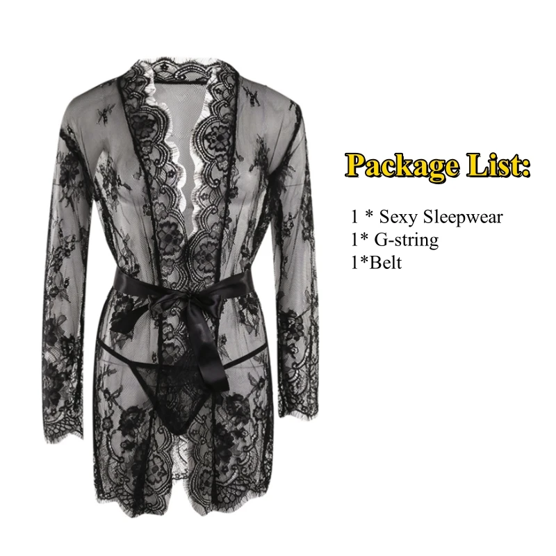 Erotic Female Sex Robe Set Lace Bandage See-through Underwear G-String Women Lingerie Sleepwear