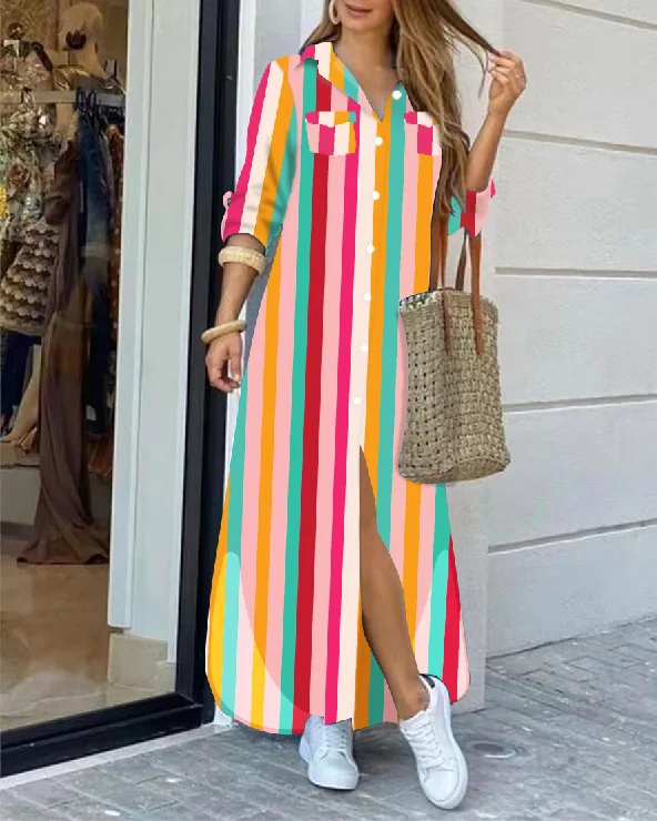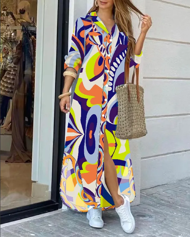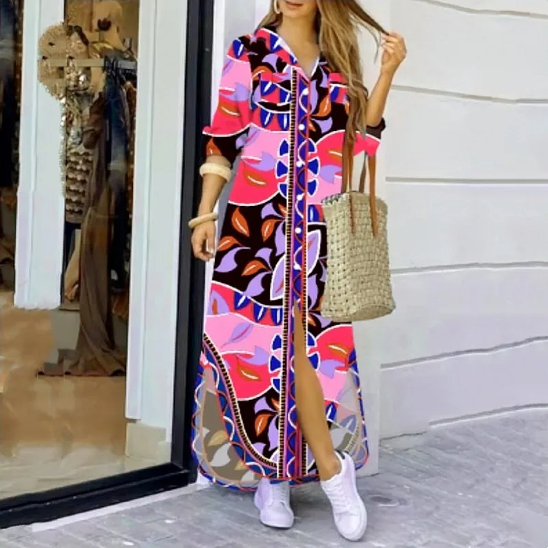 New Lady Single Breasted Shirt Dress Turn Down Collar Muslim Women Straight Dress Autumn Spring Female Maxi Dress