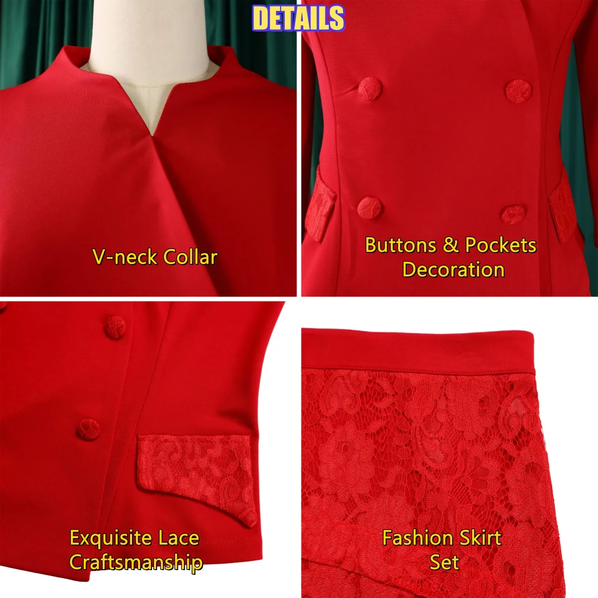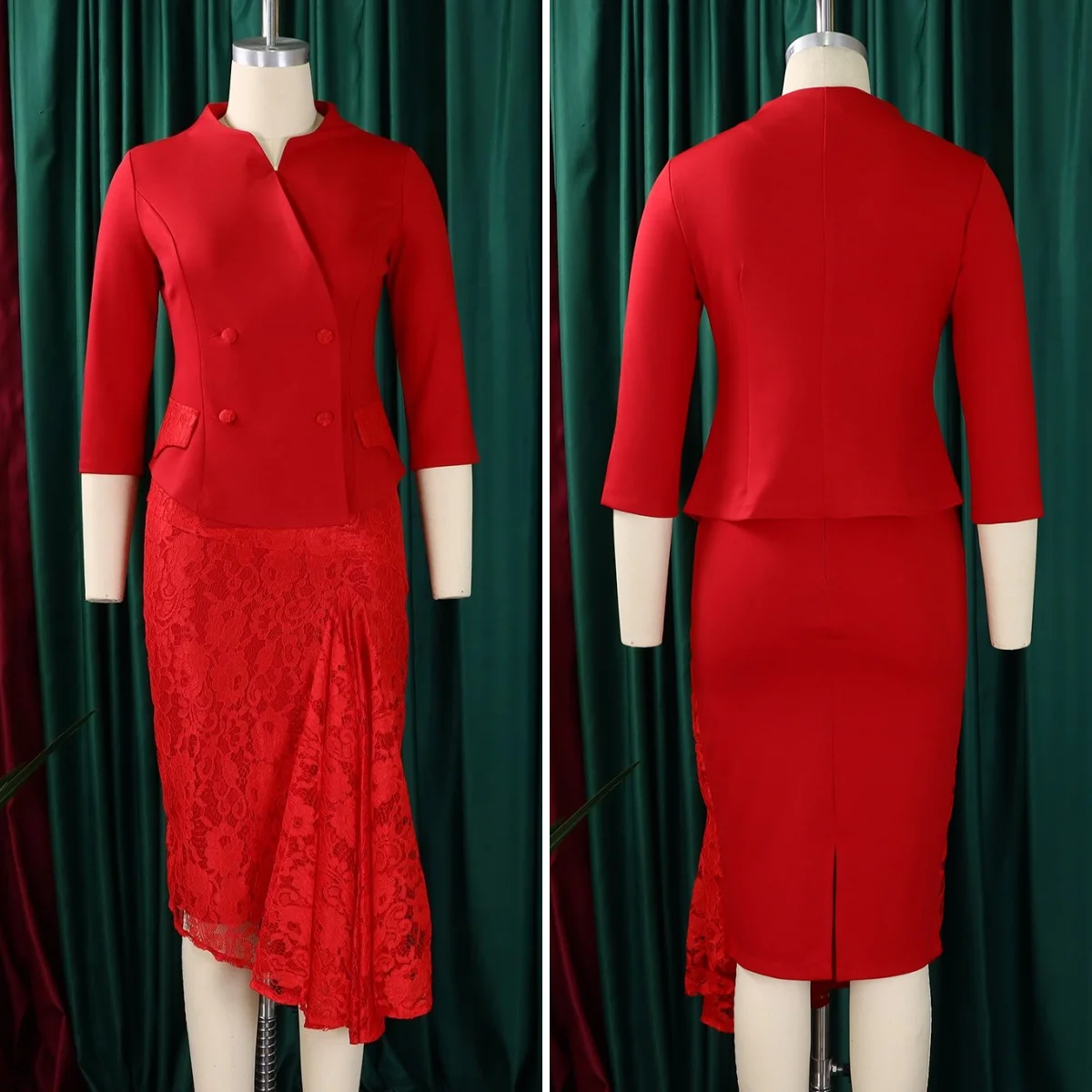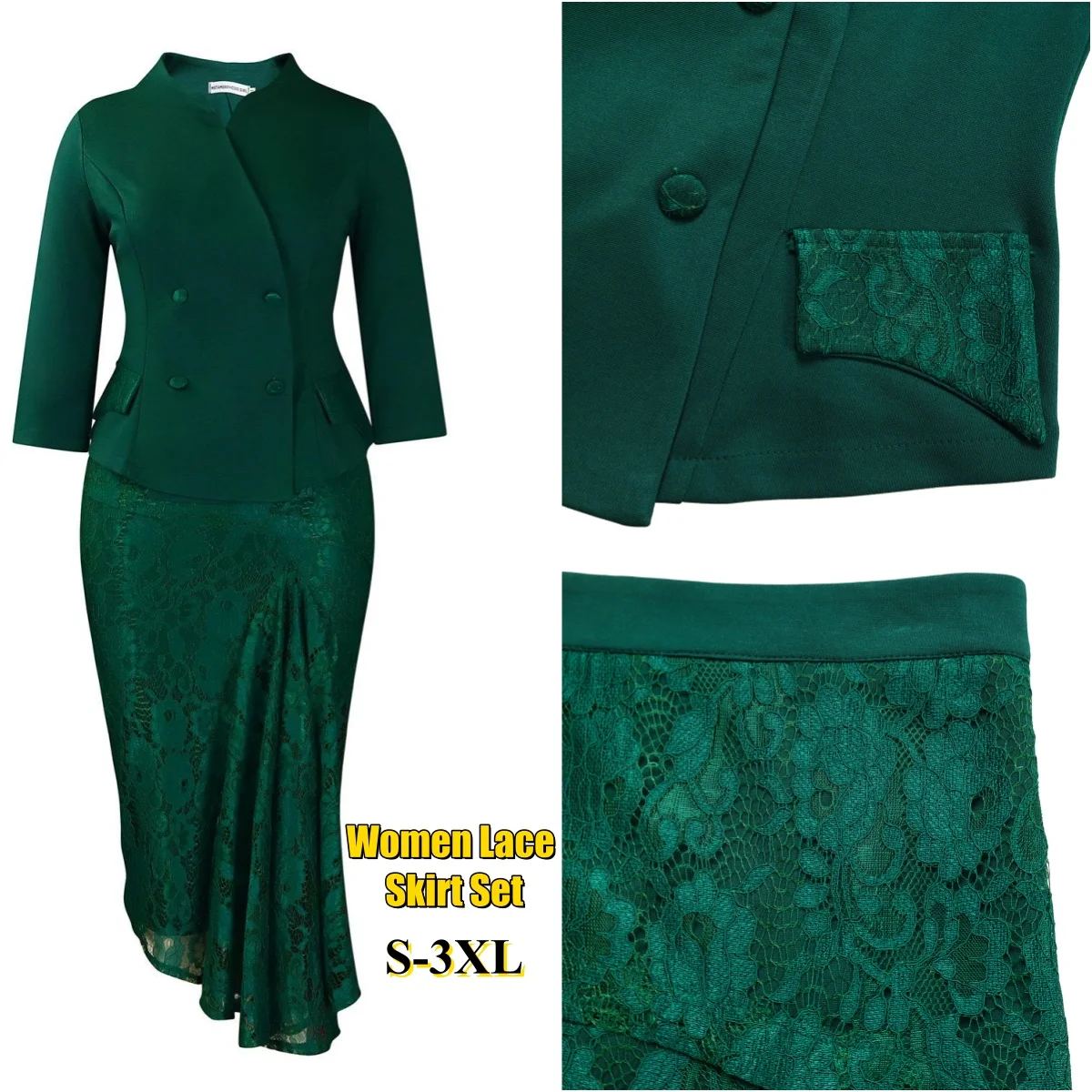 New Women Fashion Skirt Set Long Sleeve Buttons Elegant Two Piece Set Spring Autumn Office Lady Asymmetric Lace Skirt Suit