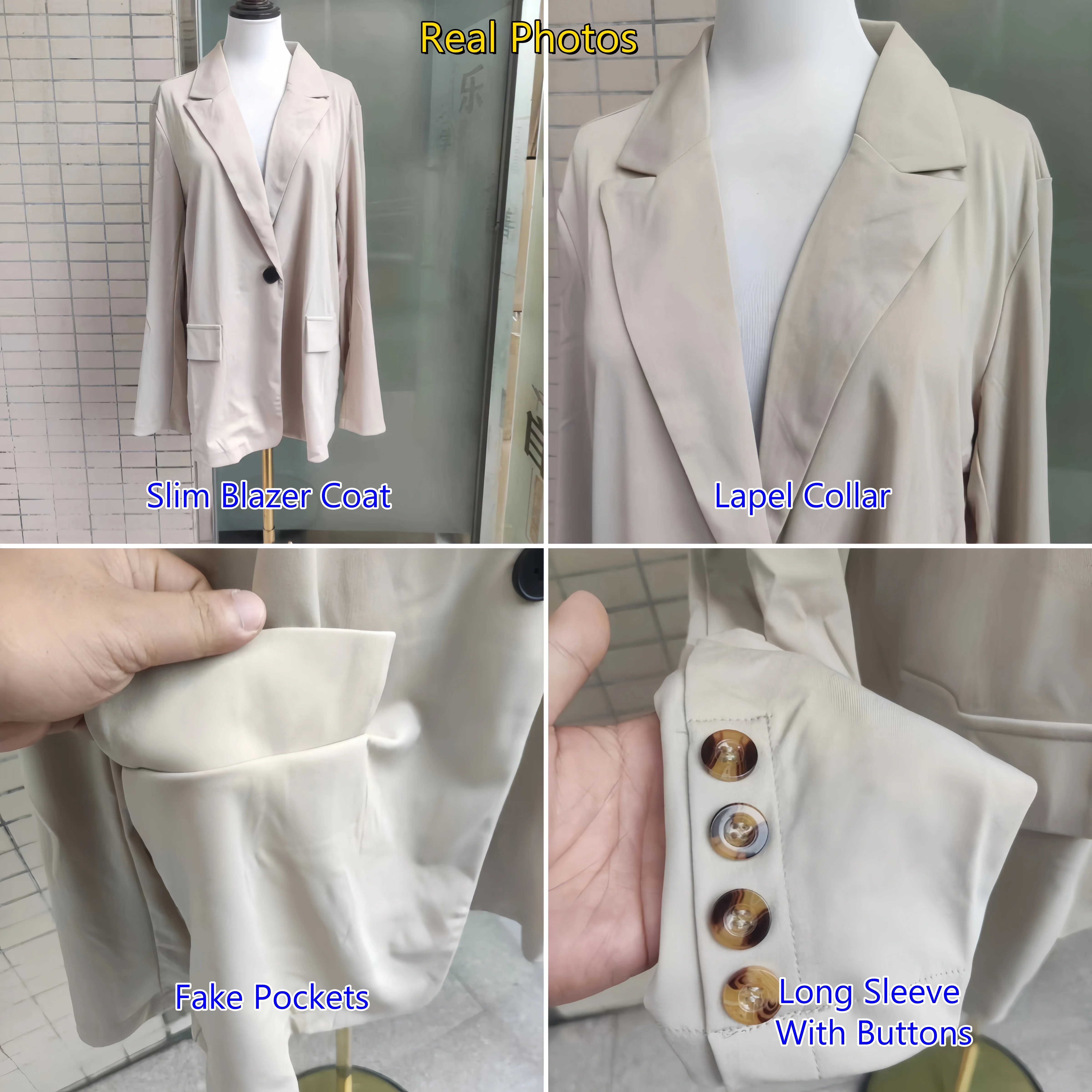 New Women Casual Blazer Coat Single Button Lapel Collar Fashion Top Long Sleeve Lady Spring Autumn Slim Blazer