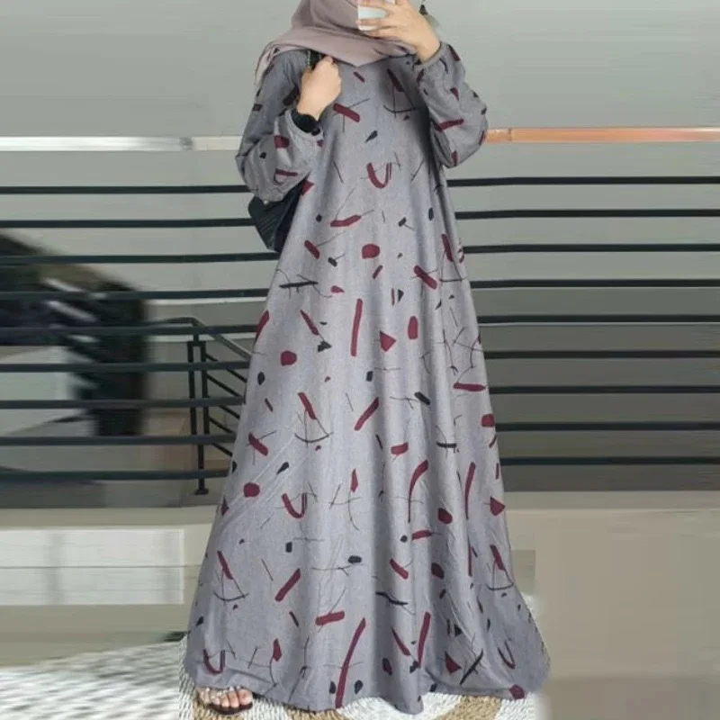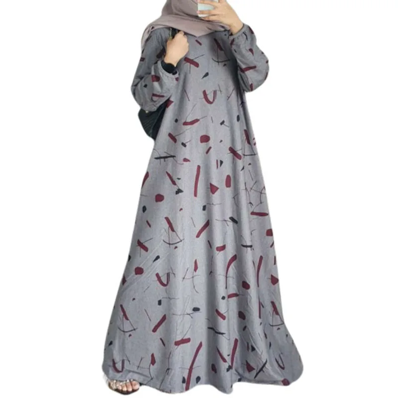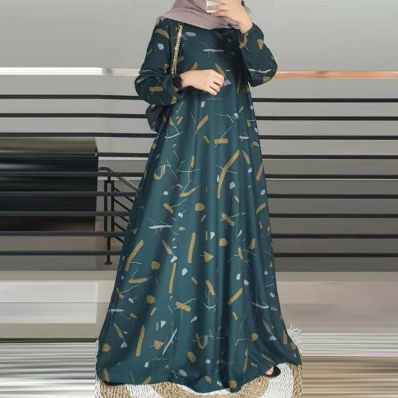 Muslim Women Casual Long Robe Dress Long Sleeve O-neck Floor Length Dress Traditional Clothing Fashion Print Lady Dress