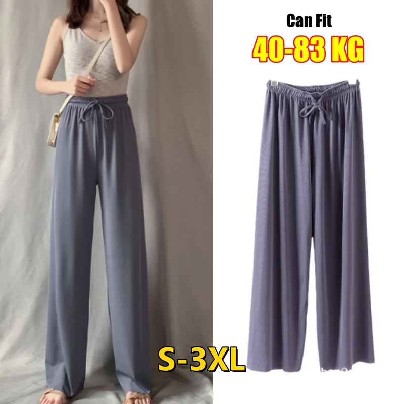 New Women Summer Loose Pants High Waist Wide Leg Ice Silk Trousers Lady Casual Long Pants
