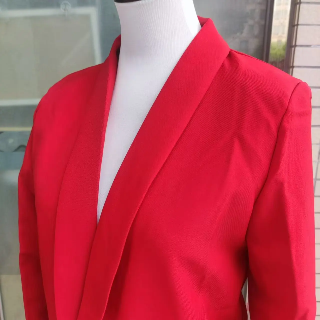 New Lady Solid Slim Casual Suit Top Spring Autumn Fashion Jacket Lapel Collar Open Stitch Women Blazer Top