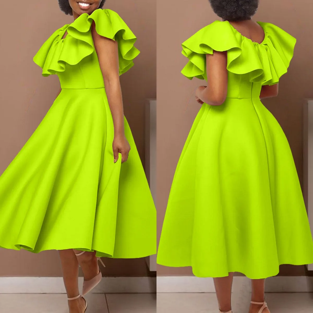 Big Swing Wedding Bridesmaid Dress Solid Women Ruffle Party Clothes Summer Plus Size Lady Maxi Evening Dresses
