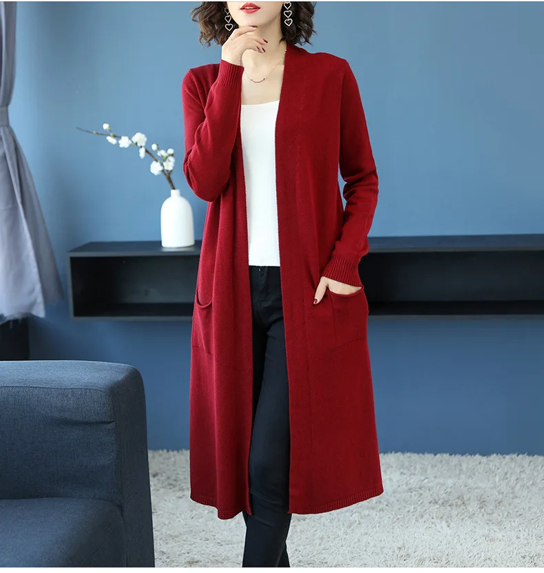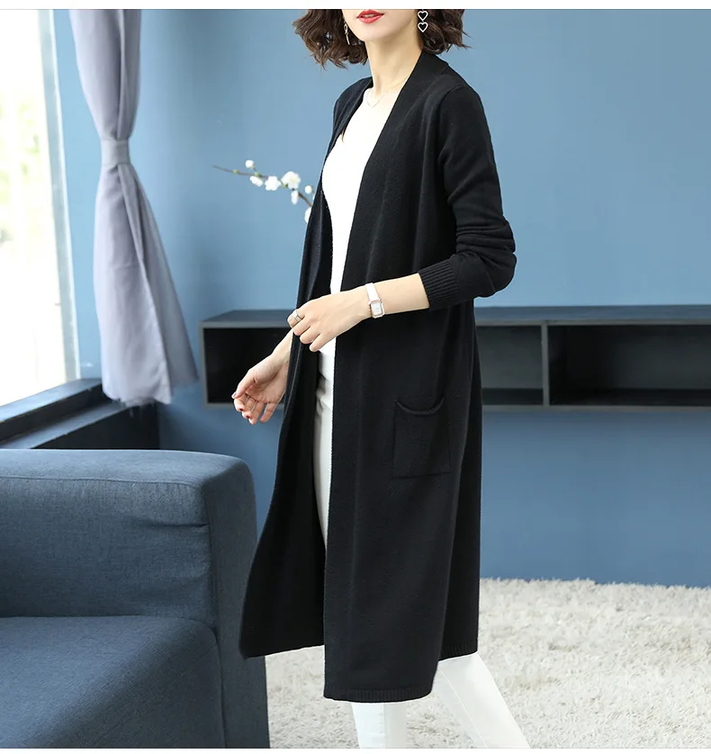 Women Long Cardigan Sweater Top Long Sleeve Knit Autumn Winter Cloak Female Thick Crochet Sweaters Overcoat