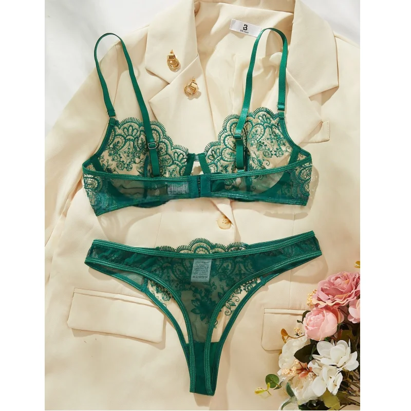 Women Sexy Lace Bra Set Eyelash Embroidery Shiny Rhinestone Hollow Out Bra Lady Sexy Lace Underwear Set