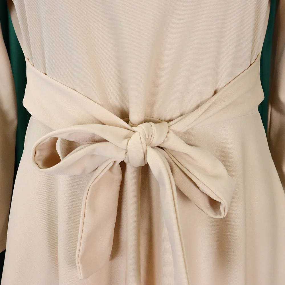 Women Spring Summer A-line Dress O-neck Long Sleeve Sashes Casual Maxi Dress New African Lady Elegant Pleated Dresses