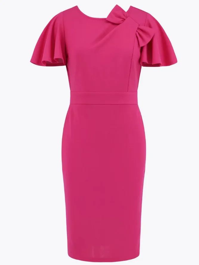 High Quality Casual Summer Pink Midi Dress for Women Asymmetrical Neckline Woven Polyester Sexy Office Career Look