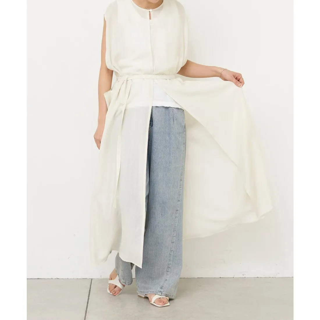 Custom O-Neck Chiffon Jumpsuit for Women High Quality Fitted Long Casual Chiffon Dress Waist Tie Pockets Eco-Friendly Button