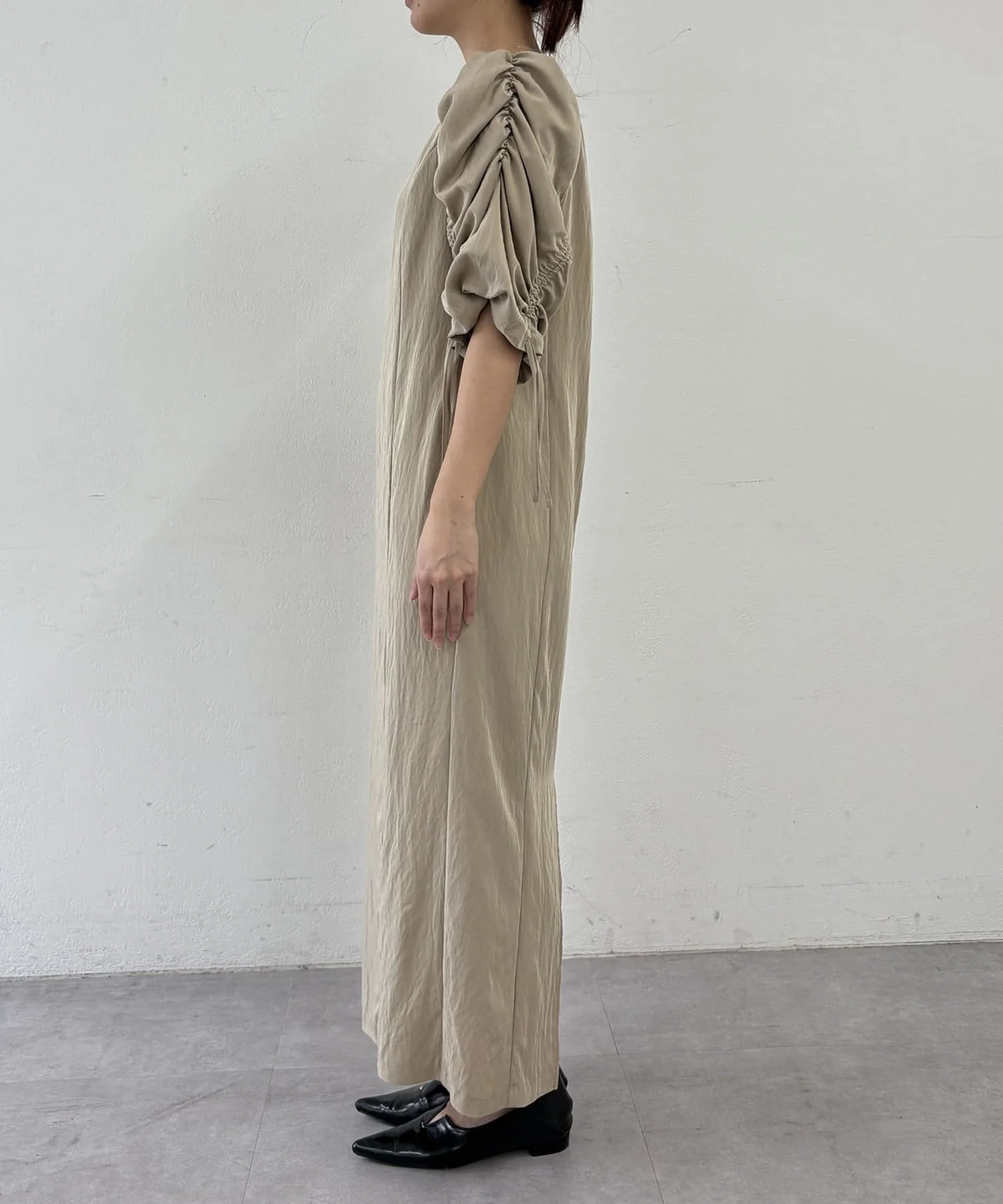 Custom Made Elegant Women's Half-Sleeved Cotton Linen Dress Solid Color Slim Collarless Floor-Length for Daily Wear High Quality