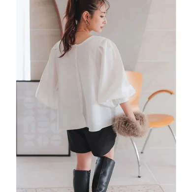 ZYHT 82024 White Blouse with Ruffled Cap Sleeves V-Neck Blouses Et Chemises Pour Femmes White Blouses for Women