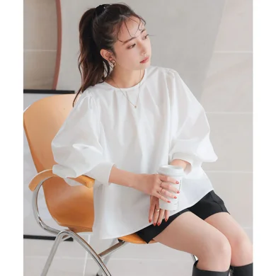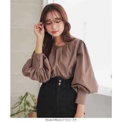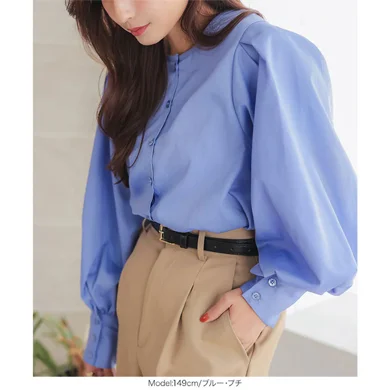Ladies' Vintage Style Chiffon-Linen Blend Shirt with Puffed Sleeves Buttons for Casual Wear in Spring Summer Autumn Seasons
