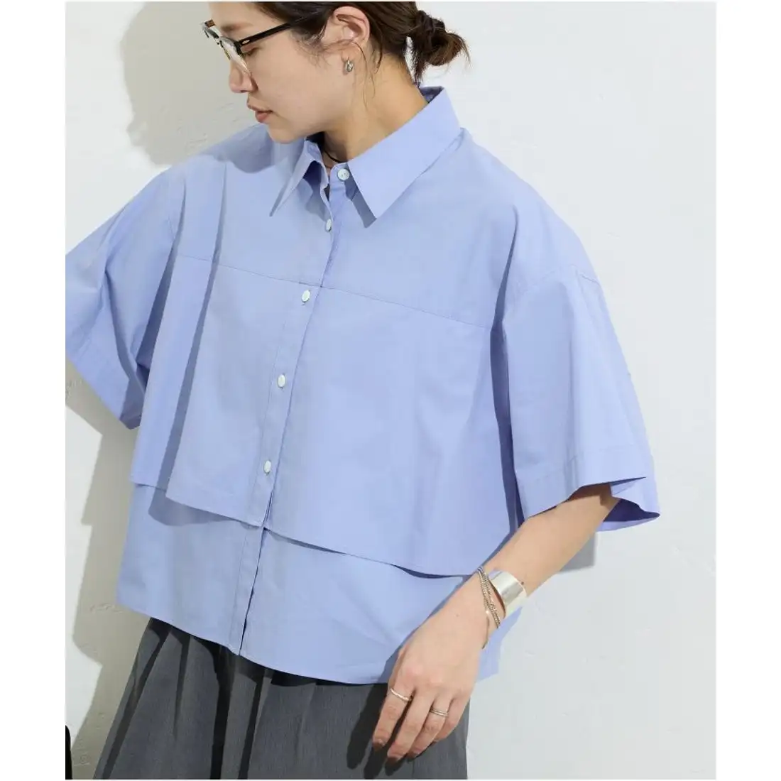 Women's Breathable Cotton-Linen Top Double-Layered Ruffle Design Button Decoration Vintage Style Comfortable for Autumn Wear