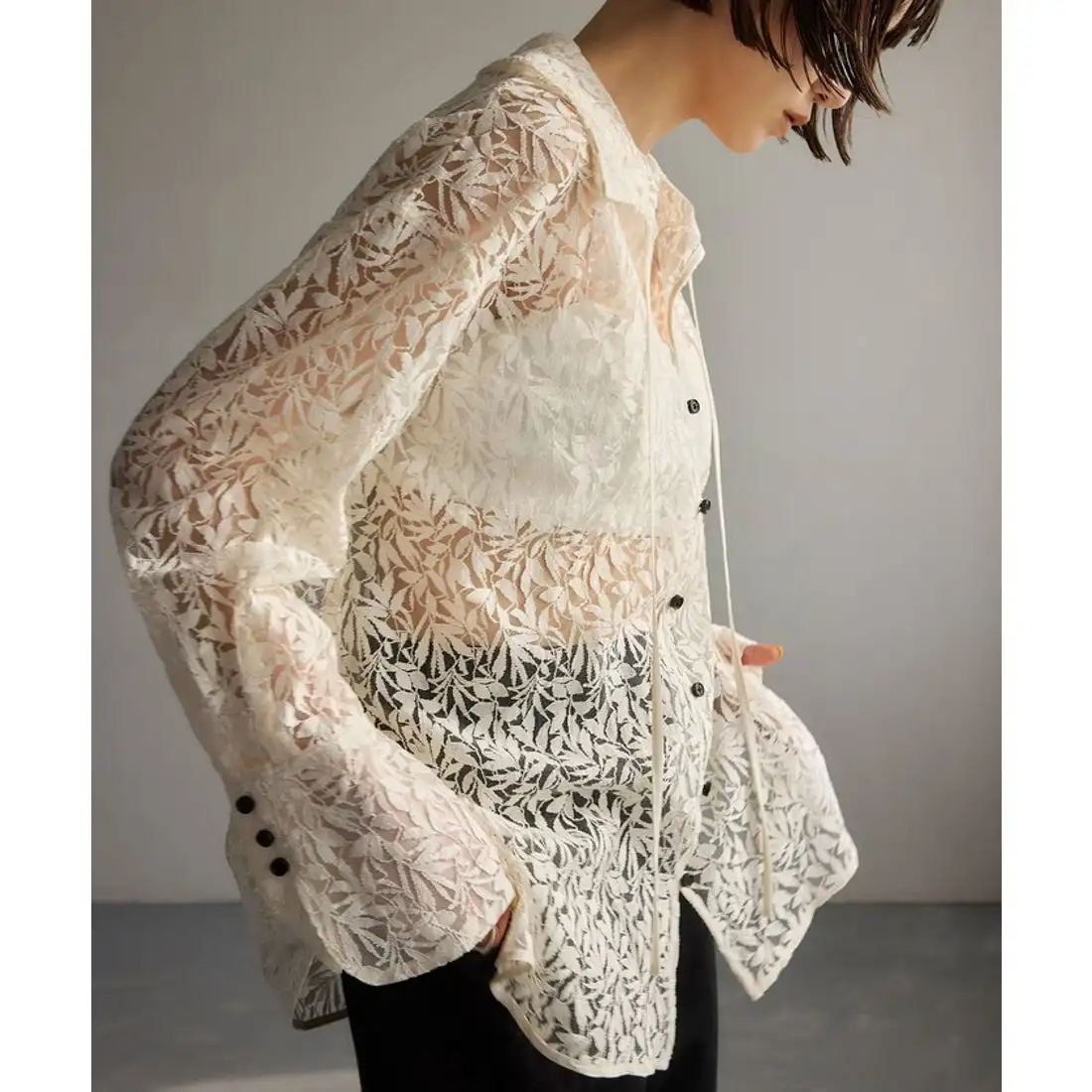 High Quality Polyester Women's Sexy Shirt Breathable Lace Buttons Vintage Floral Pattern Plain Dyed Woven Style