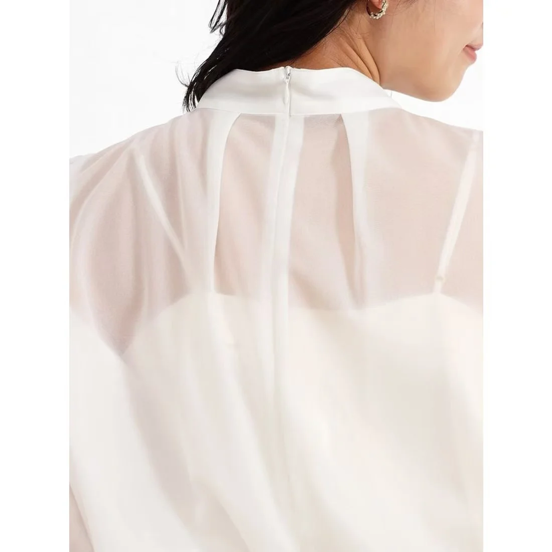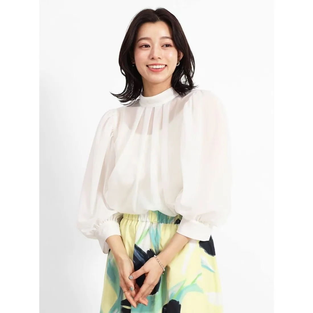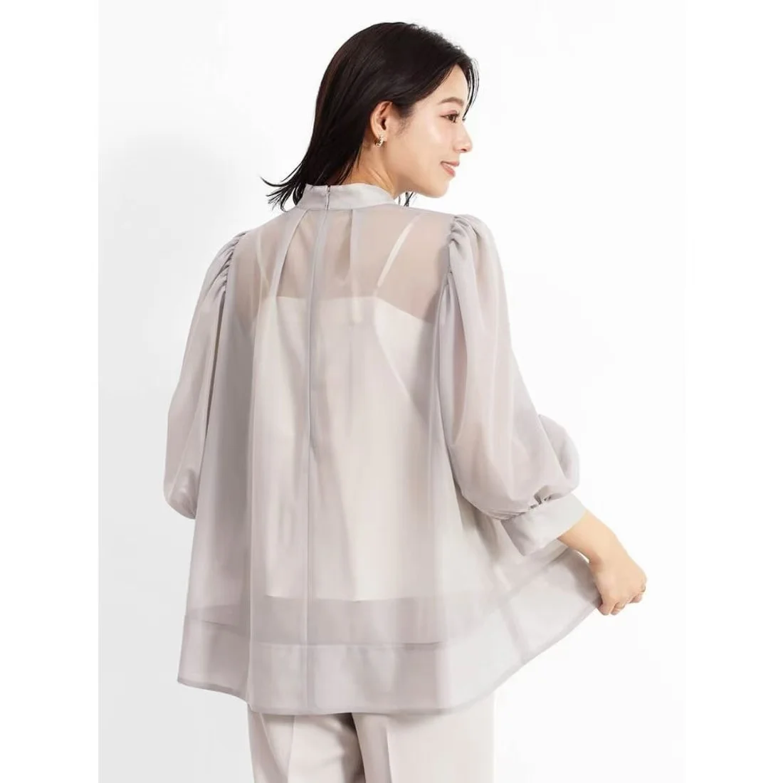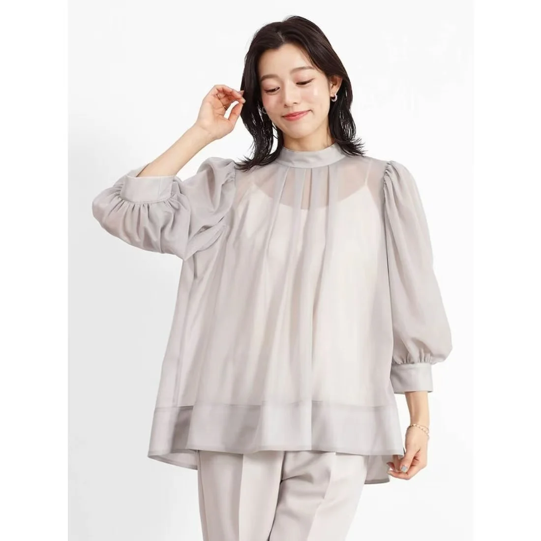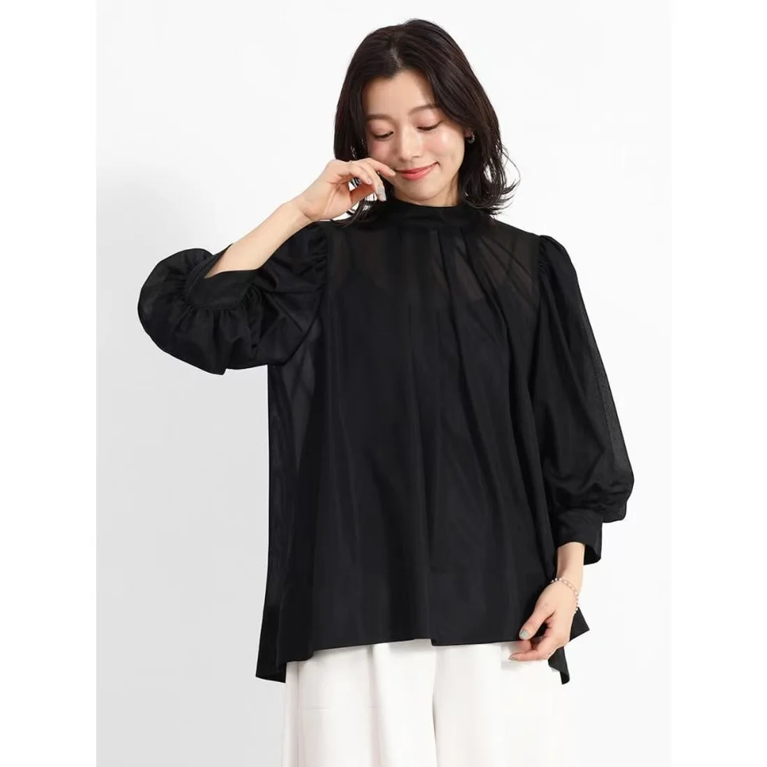 Elegant Solid Patchwork Mesh Blouses for Women Lantern Sleeves Breathable Casual Fashion Button Decoration for Spring Summer