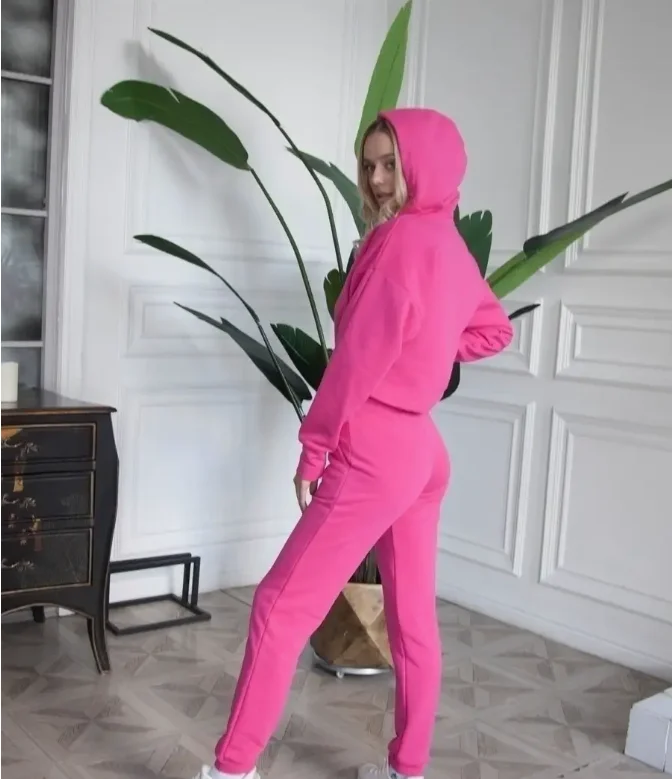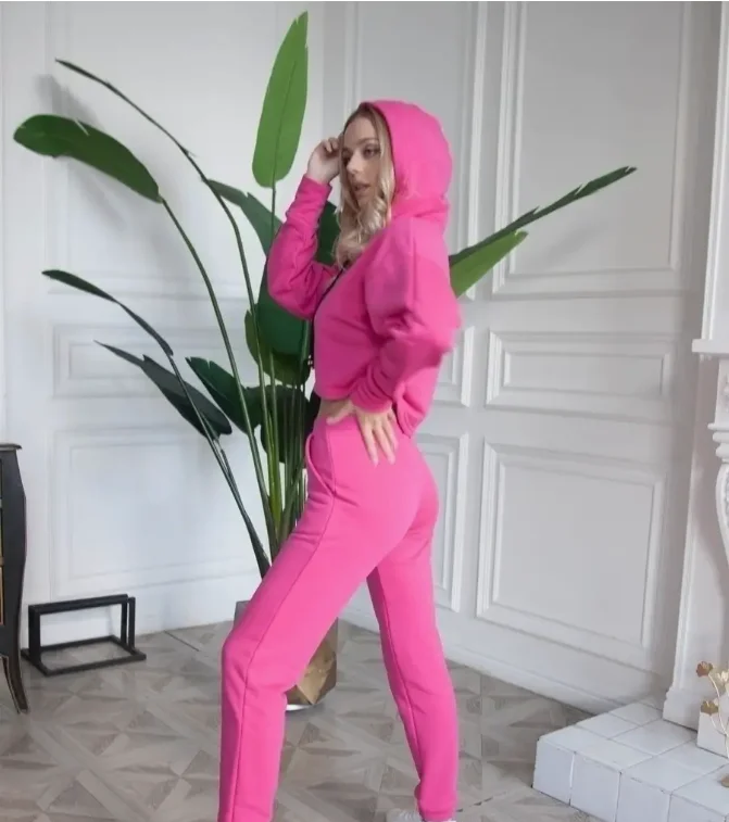 Custom Women's Casual 2-Piece Set Vitality Hooded Sweatshirt Short Length Sweatpants Made in China by Clothing Manufacturer