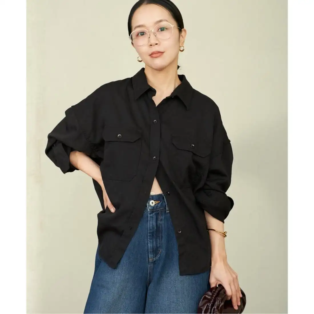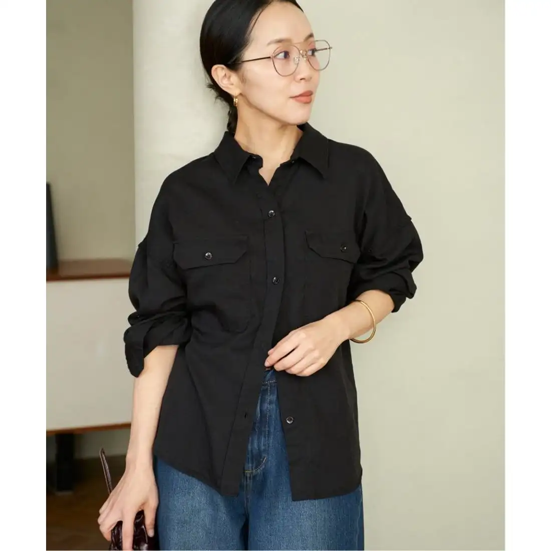 High Quality Women's Casual Cotton-Linen Shirt Woven with Button Decoration Offering OEM Services Solid Pattern