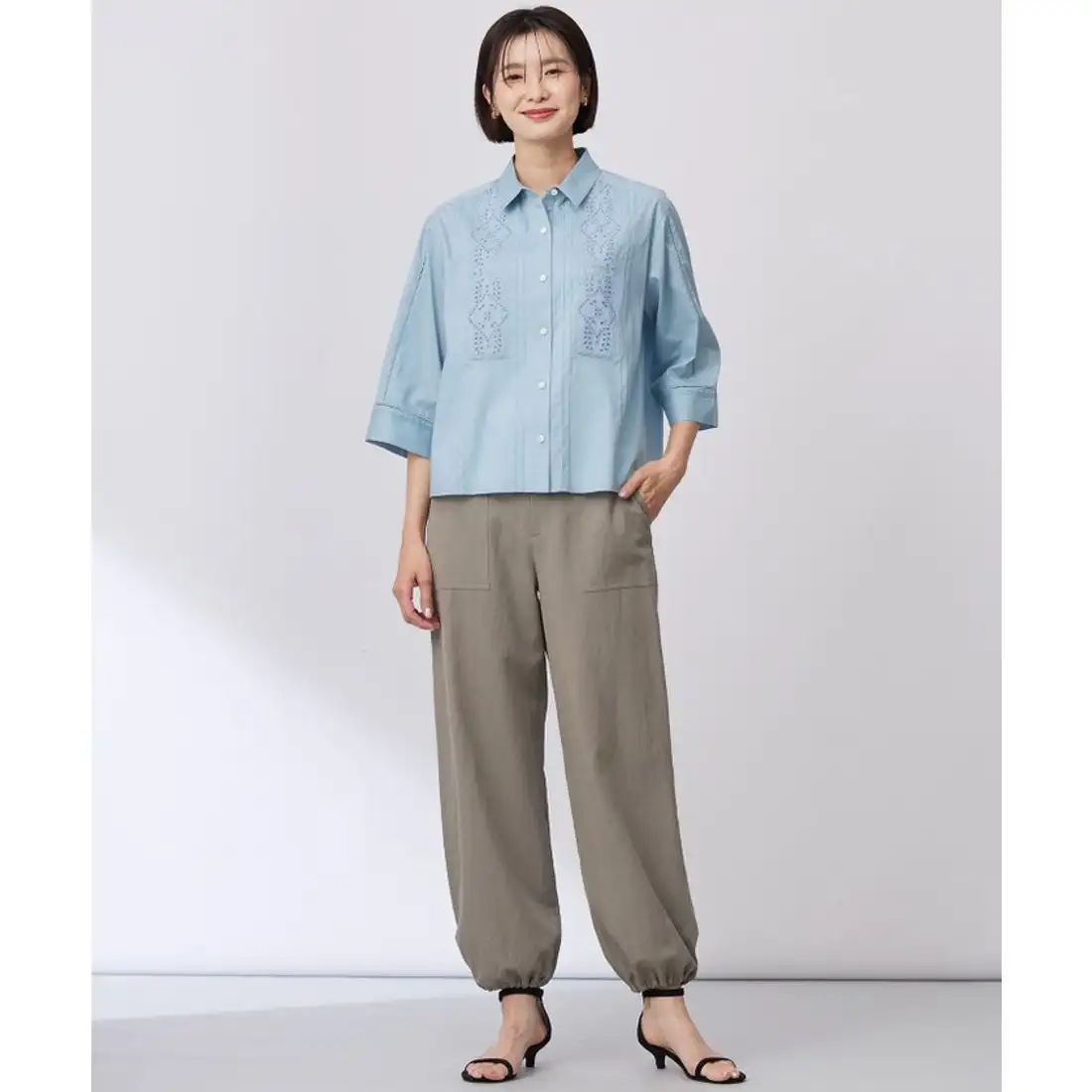 Women's Stylish Linen Short-Sleeve Shirt for Summer New Autumn Casual Design Embroidery Button Decoration Vintage Woven Fabric