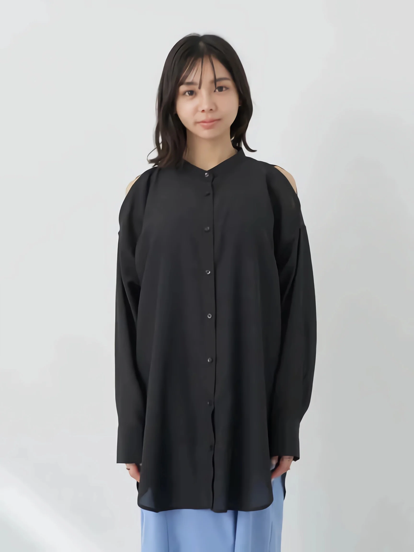 High Quality Women's Casual Long Linen Black Shirt Vintage Fashionable for Daily Office Wear Button Decoration ODM Woven Supply