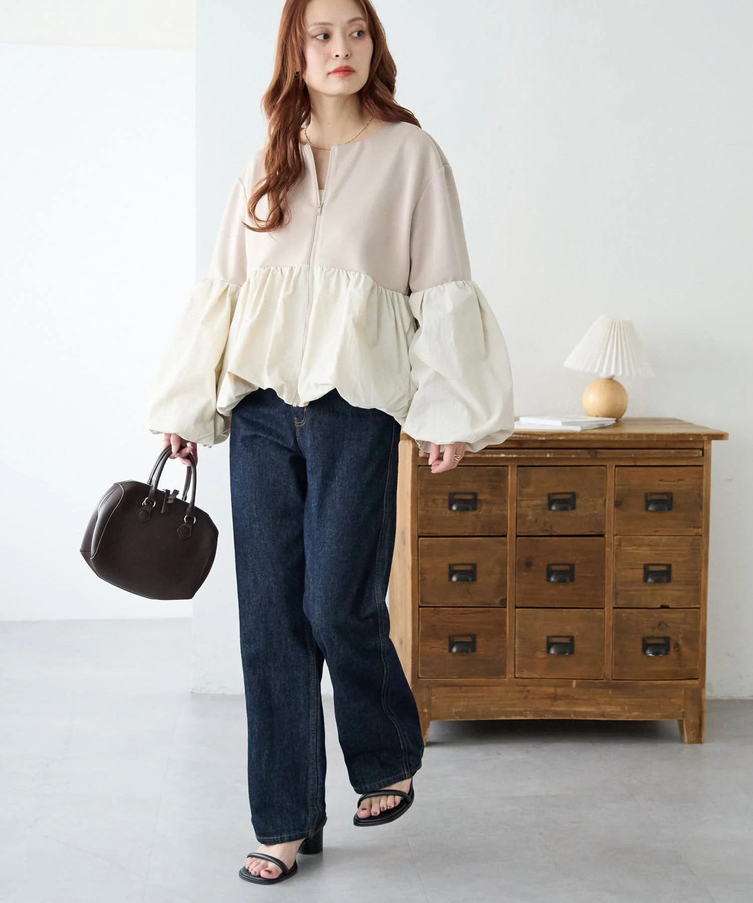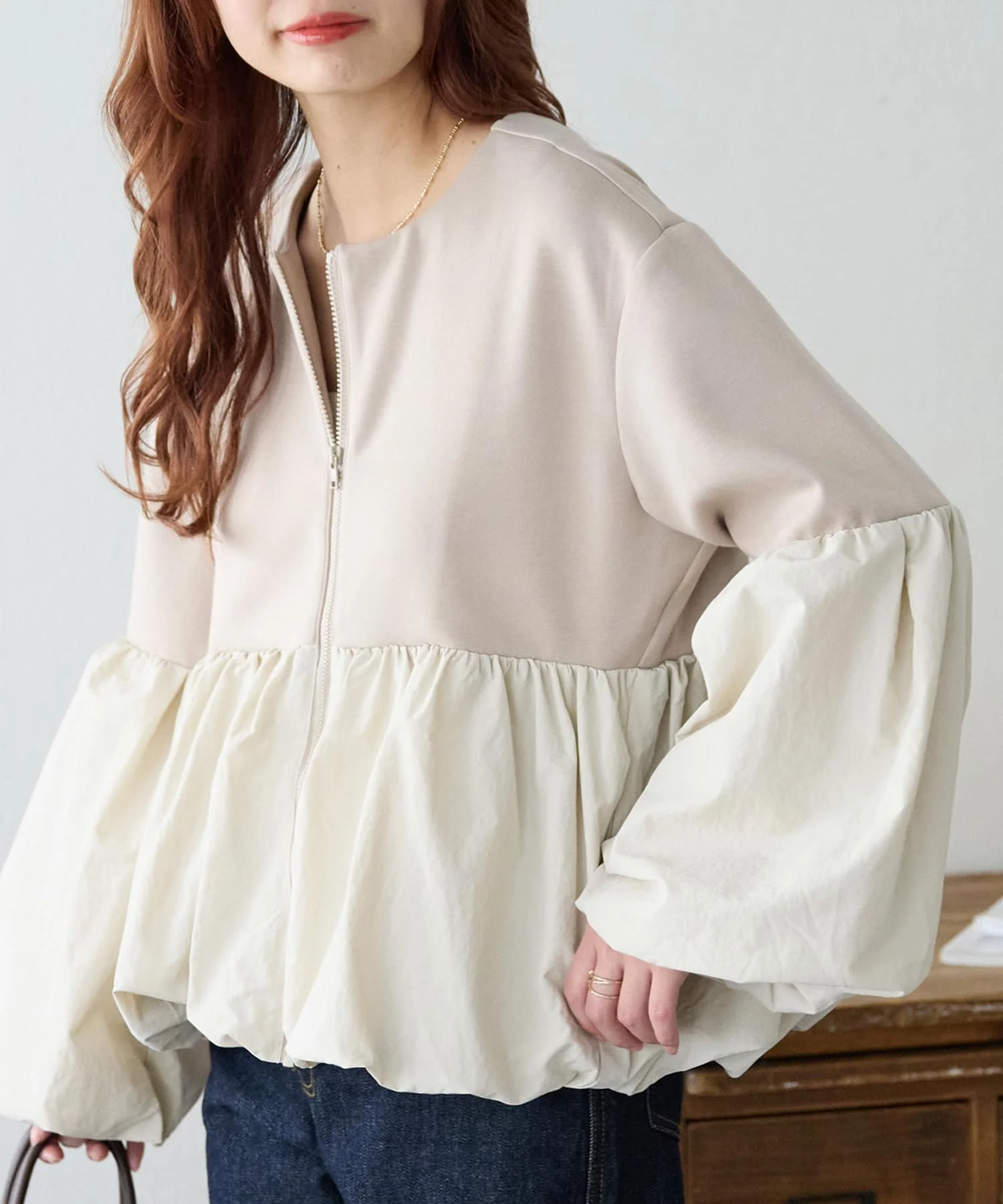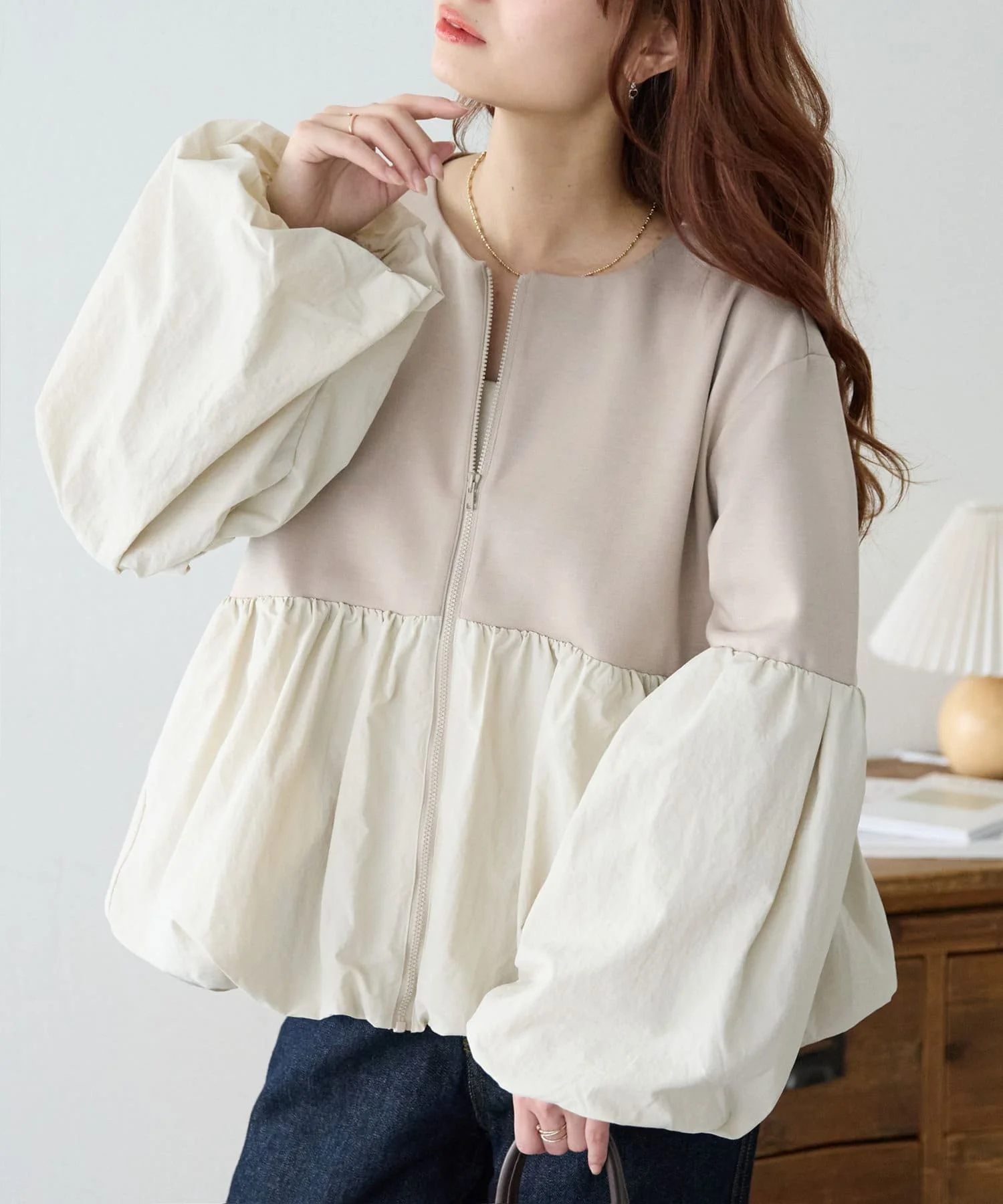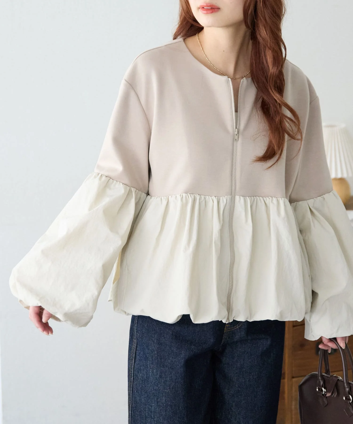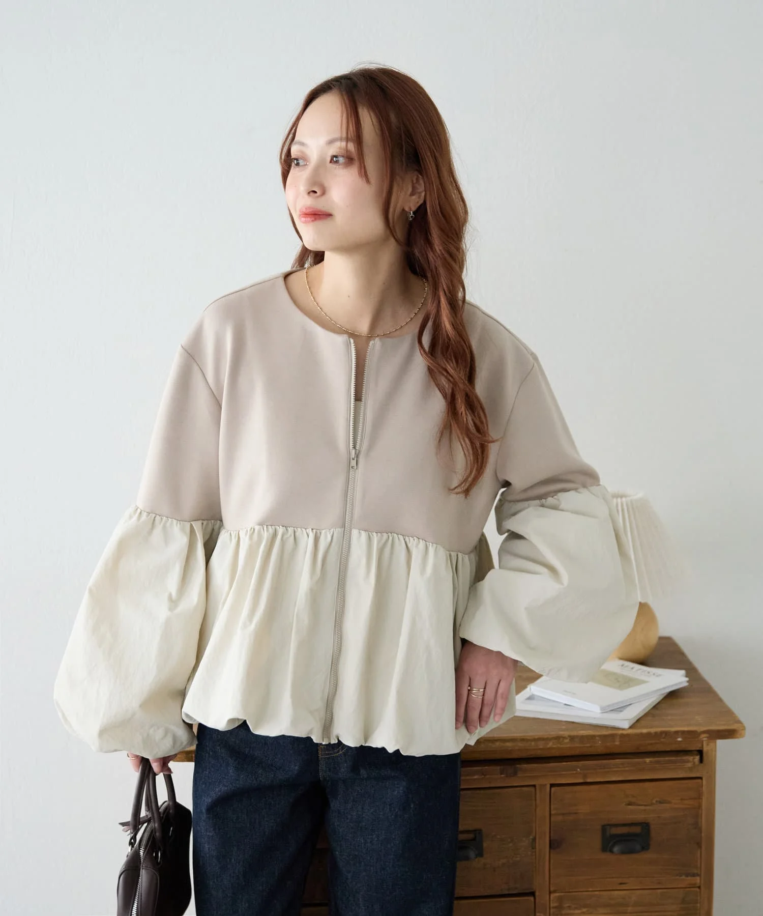 ZYHT 82053 Apricot Lace Top with Tiered Ruffled Sleeves V-Neck & Gold Buttons Blouse Wanita Elegan Women Blouse