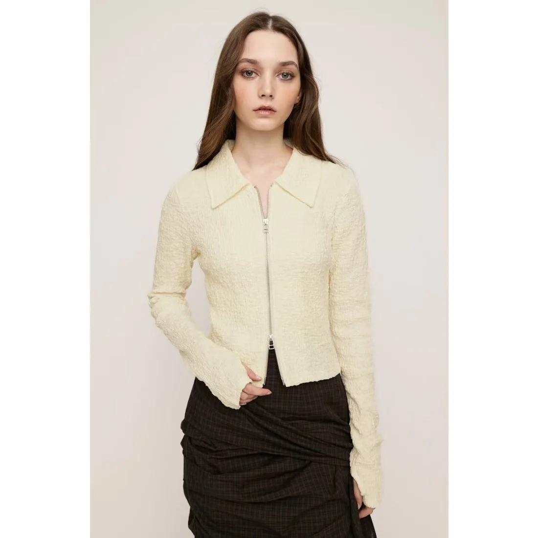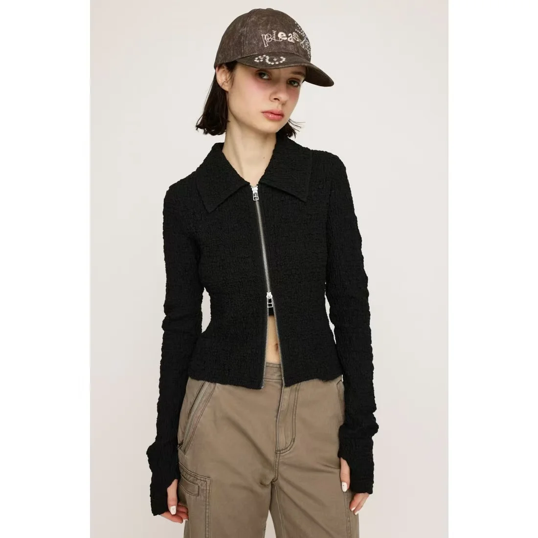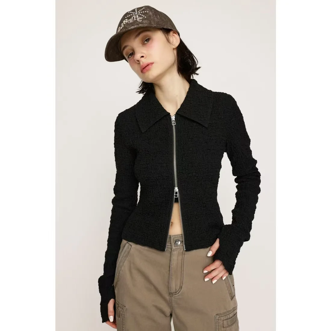 New Women's Casual Autumn Winter Knit Long-Sleeve Zip Collar Shirt Above Knee Bomber Jacket Solid Pattern with Zipper Decoration