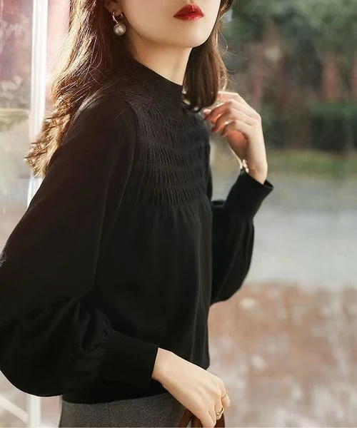 Casual Style Fast Delivery Blouse with Bell Sleeves Ruffled Pockets and Front Logo Woven Solid Pattern Plain Dyed Techniques