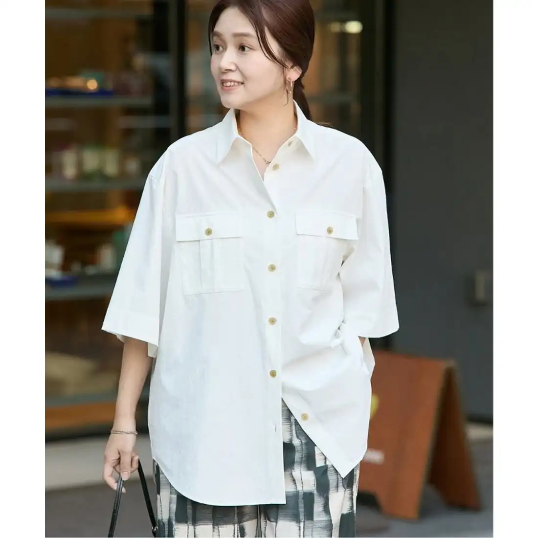 Women's Cotton-Linen Casual Shirt Loose Fit with Embroidered Logo Simple Collar Design Button Decoration Woven Solid Pattern