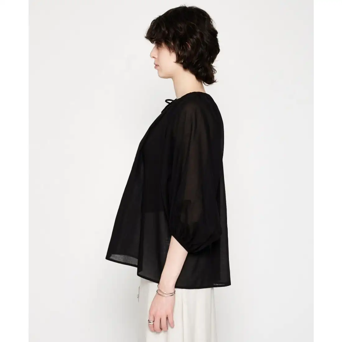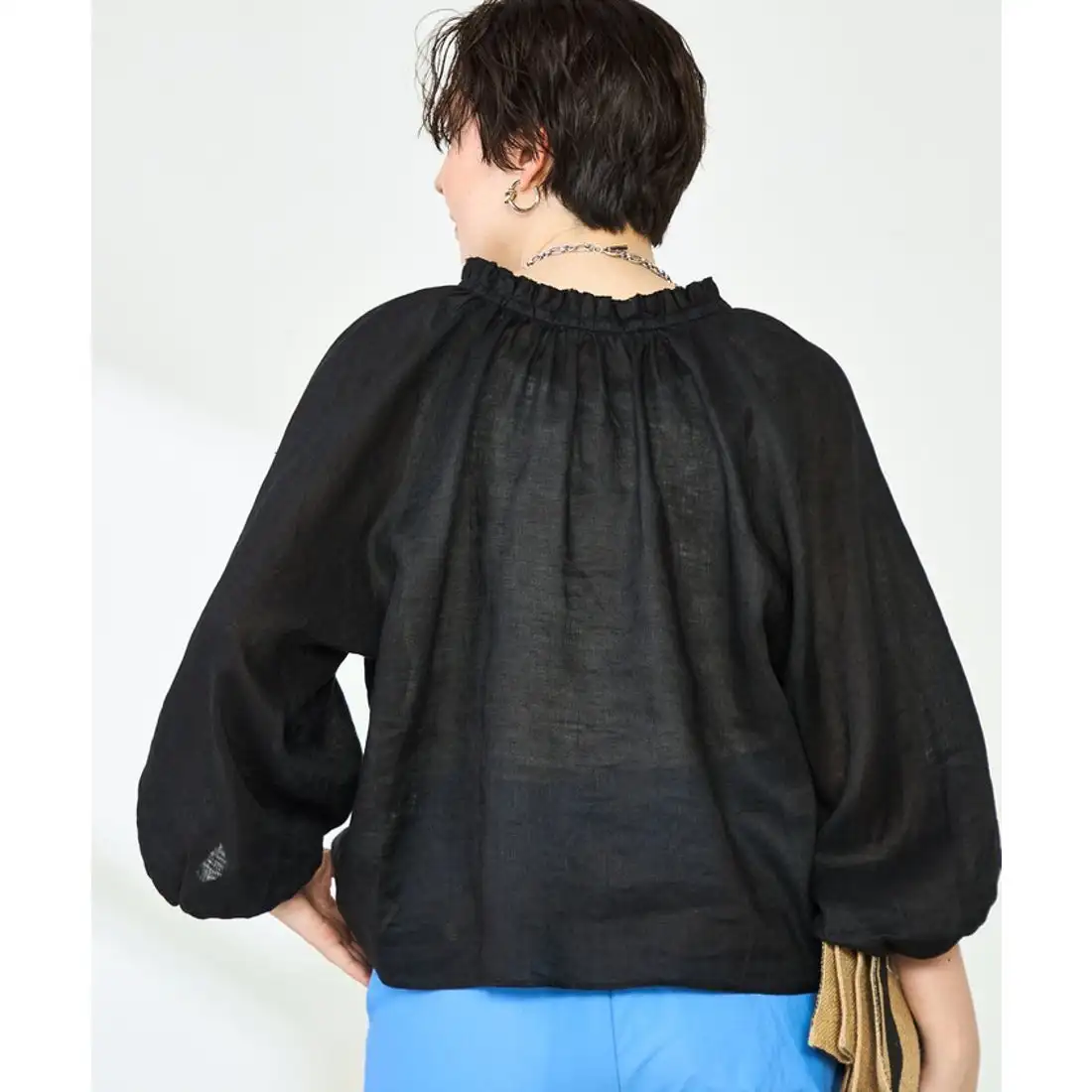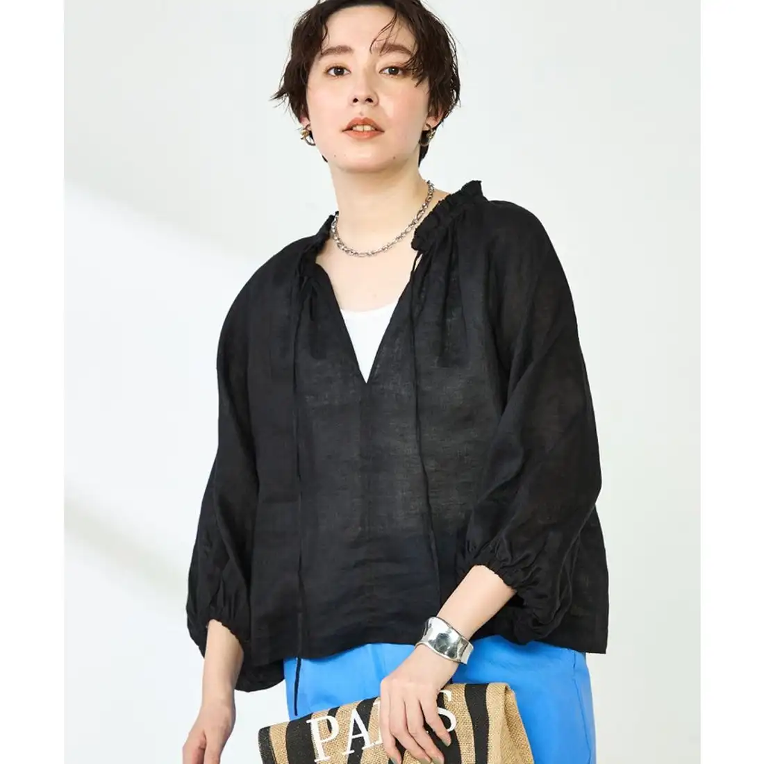 Women's Casual Vintage Blouse Linen Fabric Comfortable Fit Pleated Lantern Sleeves Stylish Bow Plain Dyed Weave V-Neck Fashion