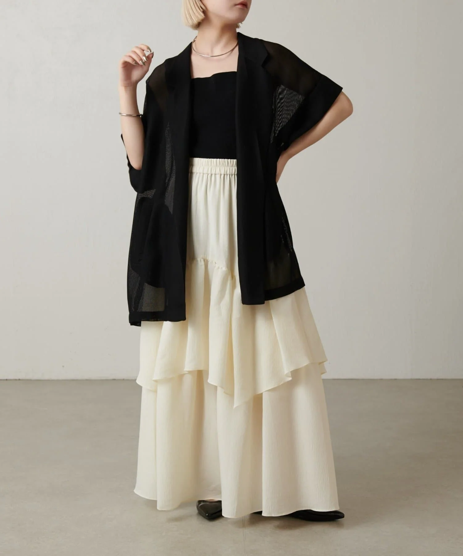 ZYHT 35239 Women's Elegant Black Velvet Blazer with White Ruffled Trim Peplum Hem & Long Puff Sleeves Chic Formal Jacket