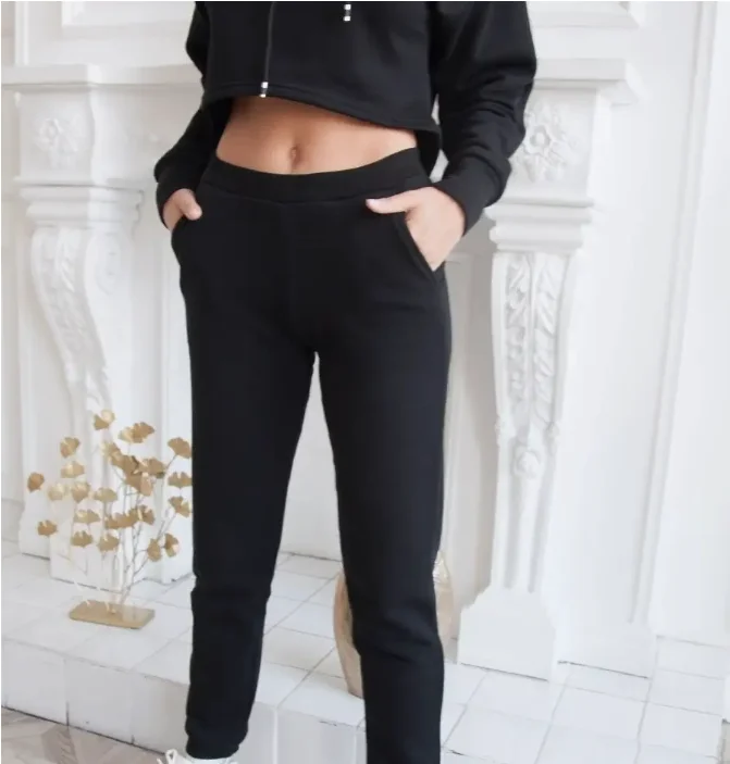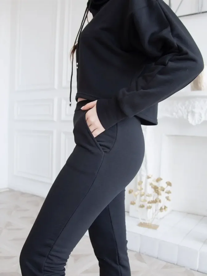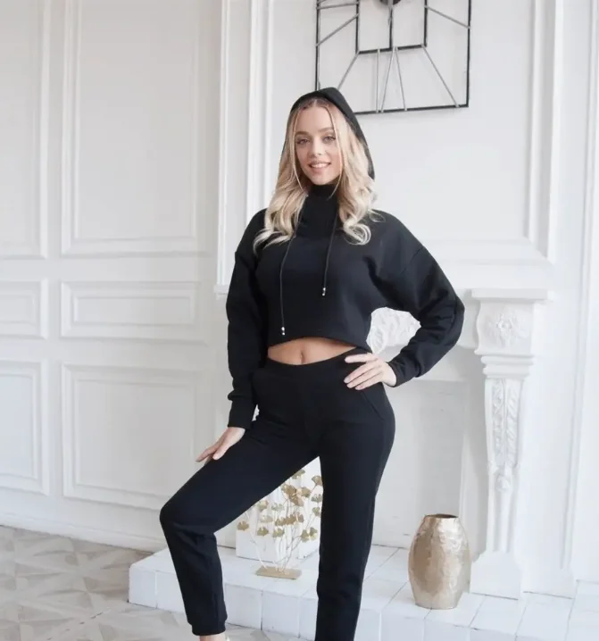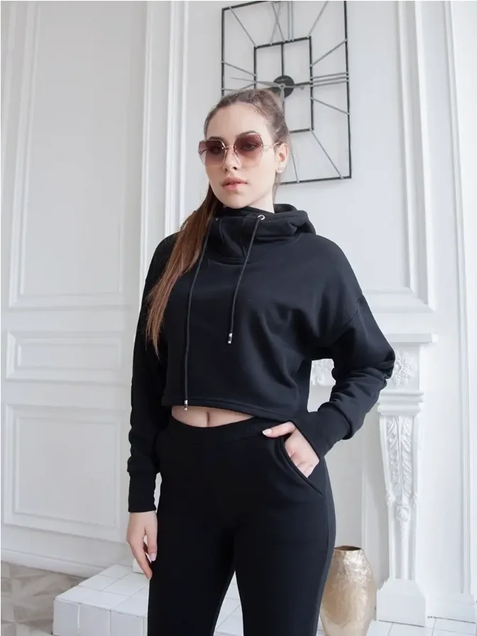 Women's Casual Hooded Drawstring Sweatshirt Sports Pants Set Professional High Quality Customized Wholesale Short Black Color