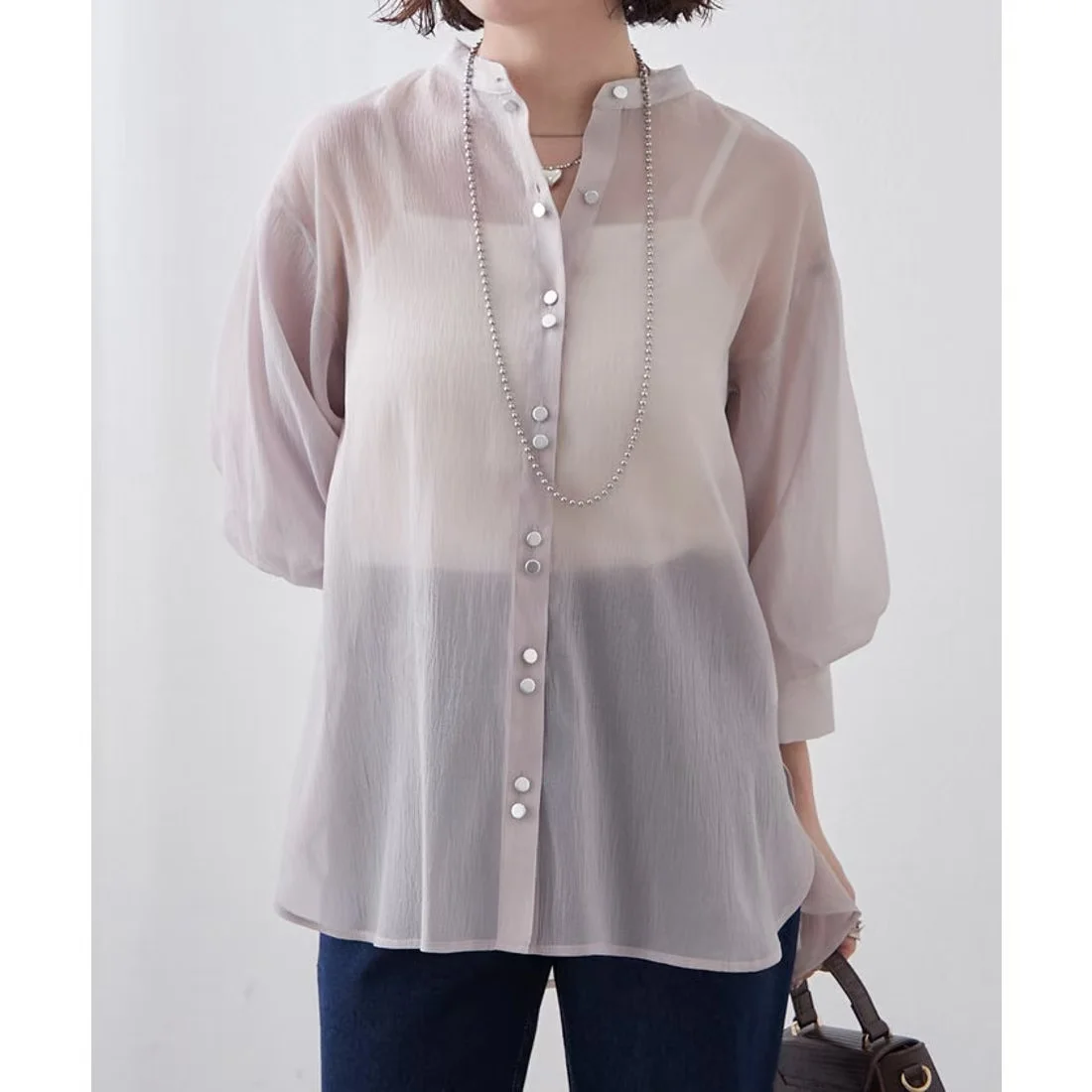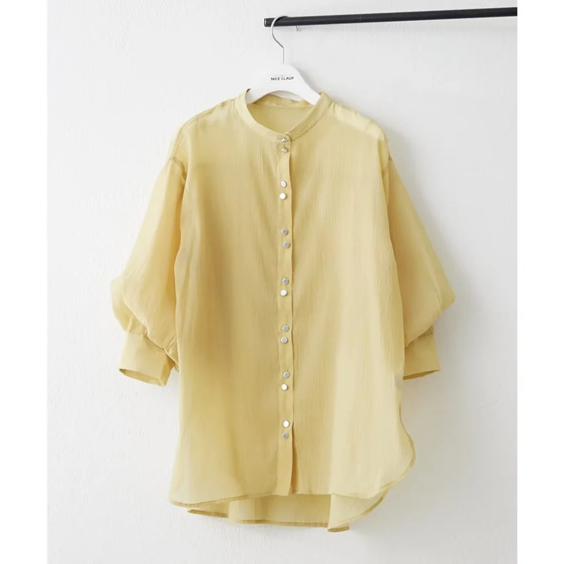 ZYHT 15545 Women's Blouses & Shirts Mint Green Tweed Blazer with Puff Sleeves & Peplum Fit Button-Detail Long Sleeve Jacket