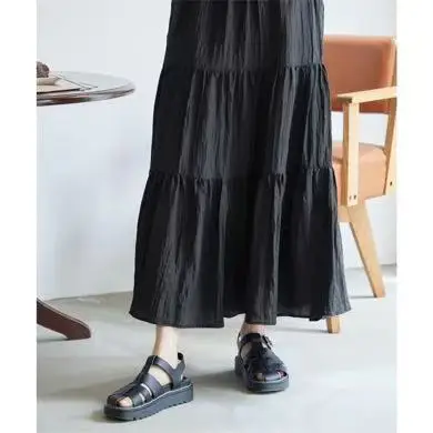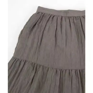 Vintage Korean Ball Gown Design High-Waisted Pleated Skirt and Tiered Dress Breathable Summer Linen-Cotton Casual Stretchy