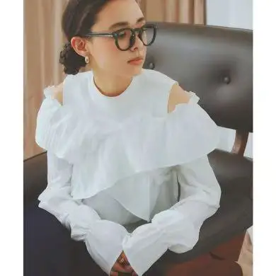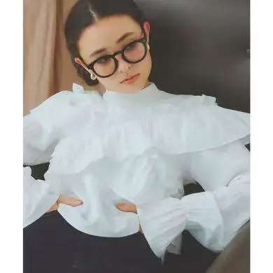 ZYHT 82024 White Blouse with Ruffled Cap Sleeves V-Neck Blouses Et Chemises Pour Femmes White Blouses for Women
