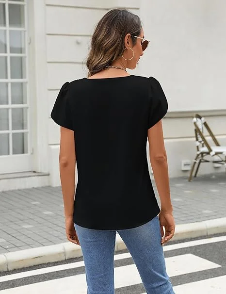 ZYHT 82024 White Blouse with Ruffled Cap Sleeves V-Neck Blouses Et Chemises Pour Femmes White Blouses for Women