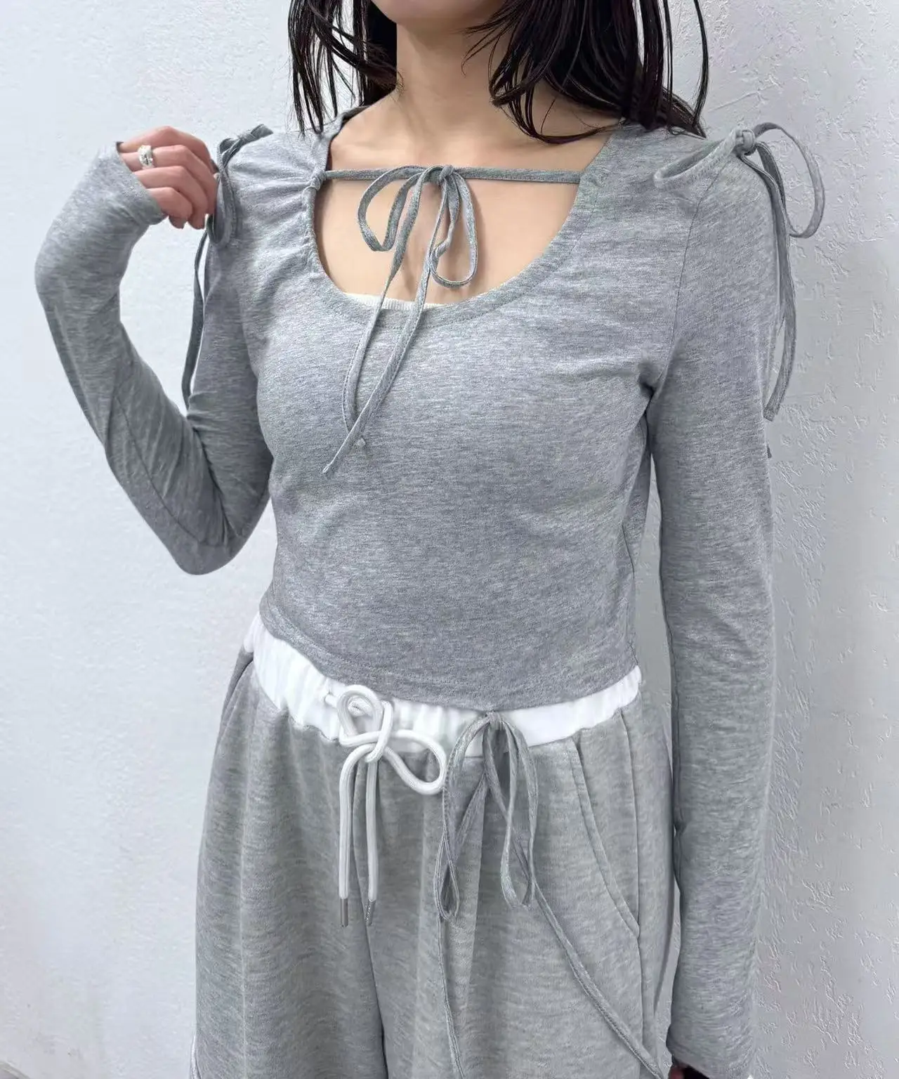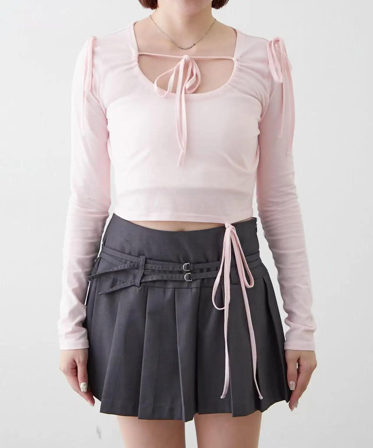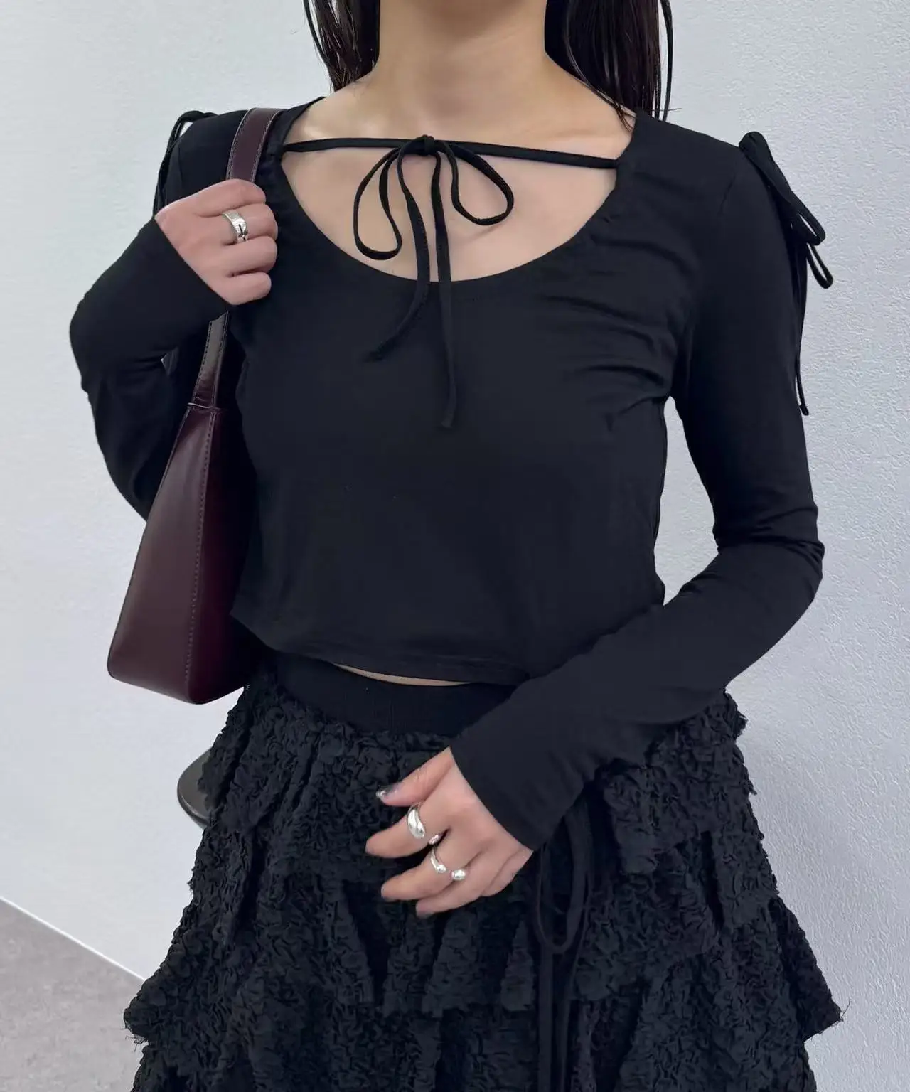 Girls' Style Women's Slim-Fit T-Shirt with Breathable Bow Tie Ruffles Short Crop Top Sweet and Chic Y2K Design