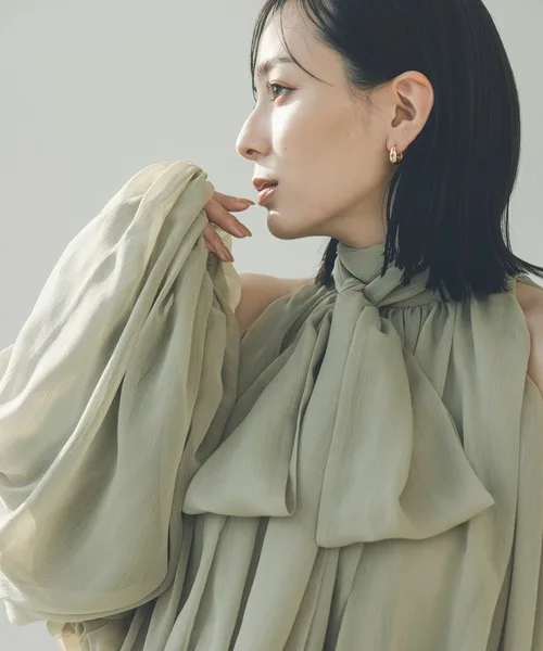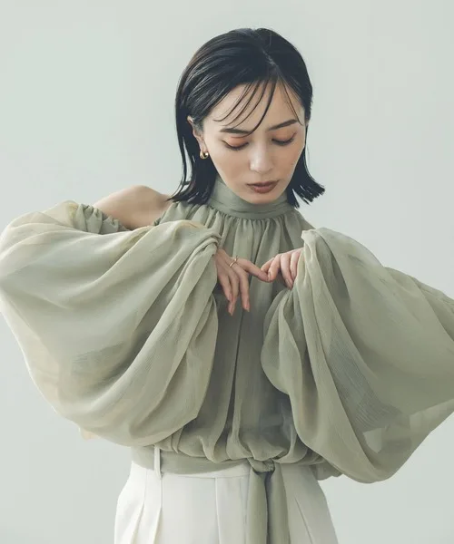 Women's Stylish Vintage Pleated Blouse with Button Decoration Fashion Lantern Sleeve Woven Solid Pattern