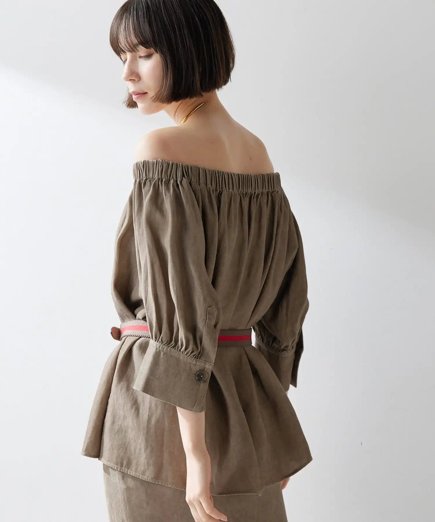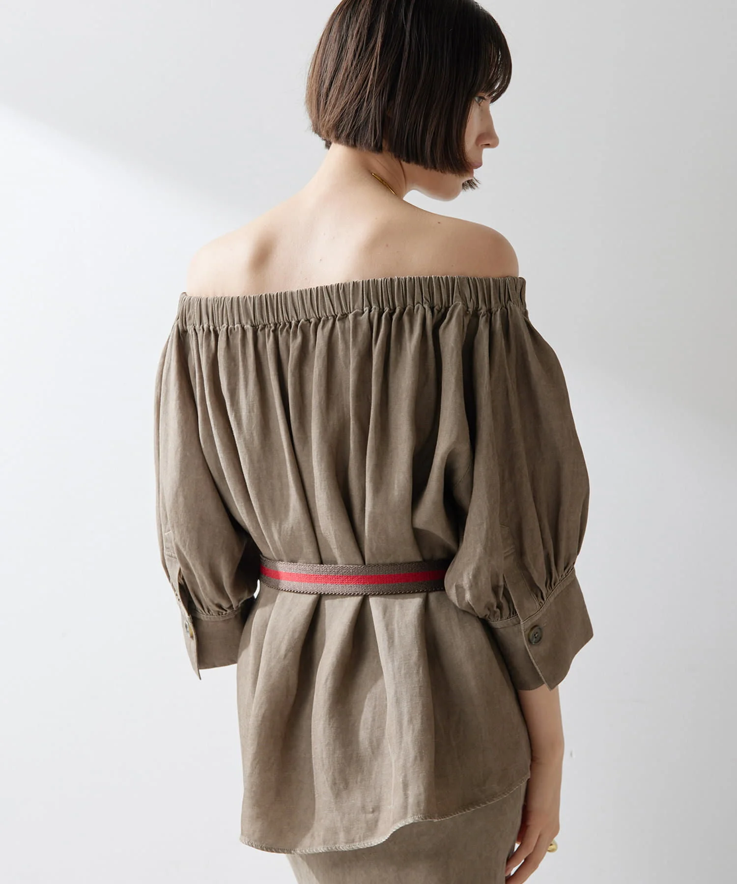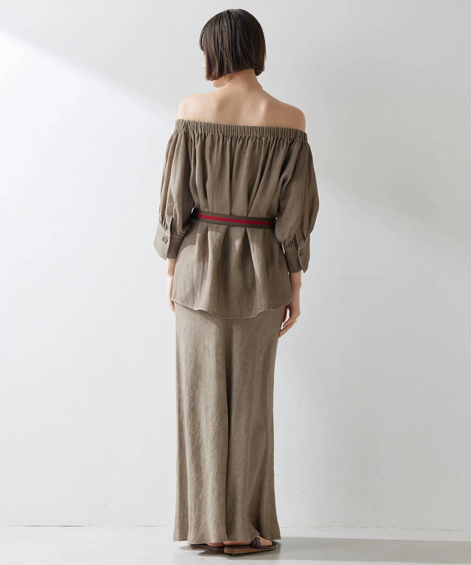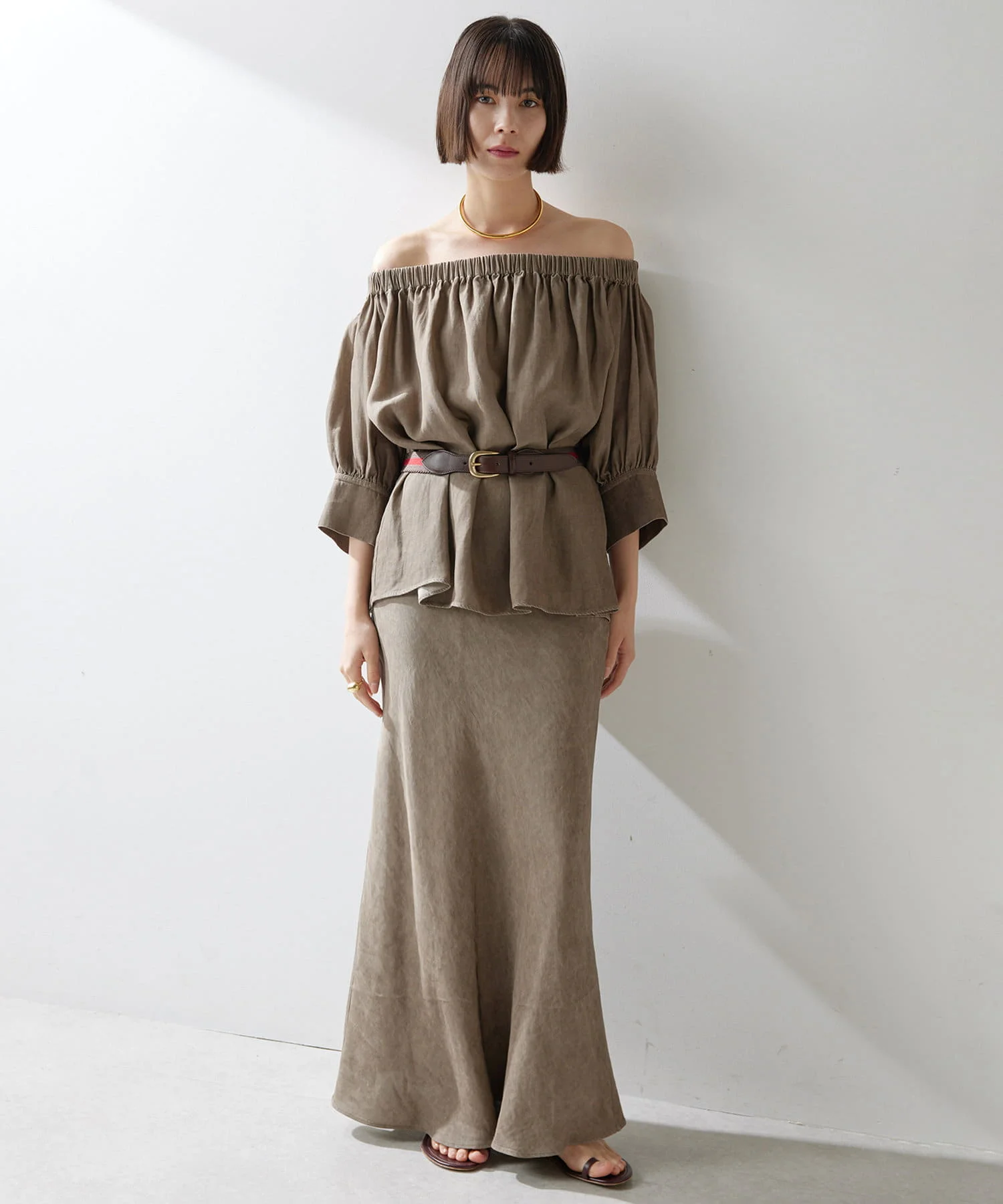 High Quality Sexy Long Light Brown Off-Shoulder Pleated Linen Top Women Custom Daily Casual Party Wear Vintage Weave ODM Supply