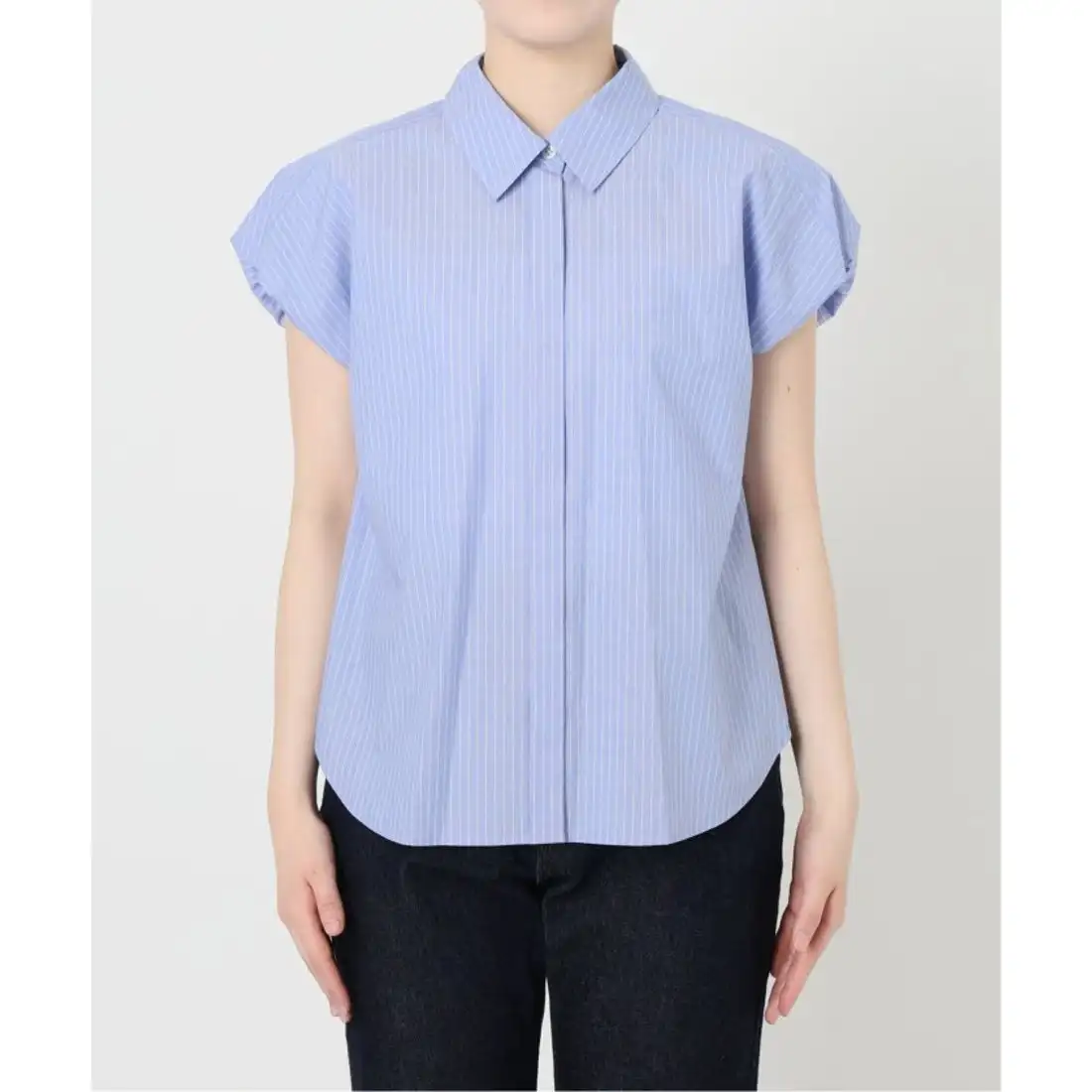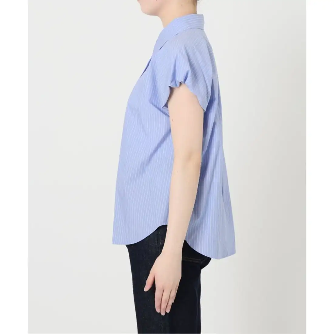 Vintage Women's Casual Cotton-Linen Stripe Pattern Shirt Short Sleeves with Button Decoration for Summer