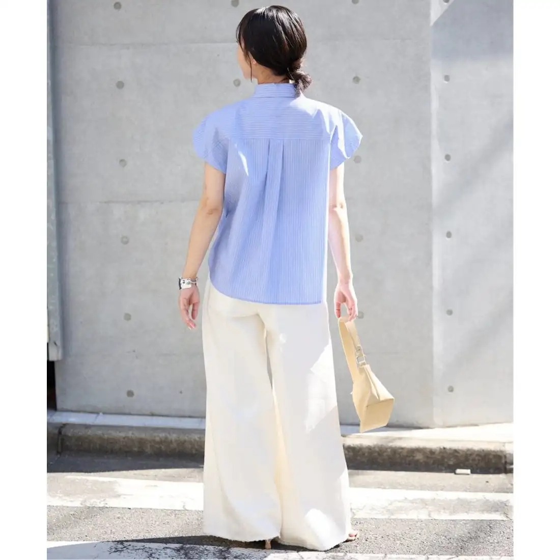 ZYHT 82024 White Blouse with Ruffled Cap Sleeves V-Neck Blouses Et Chemises Pour Femmes White Blouses for Women