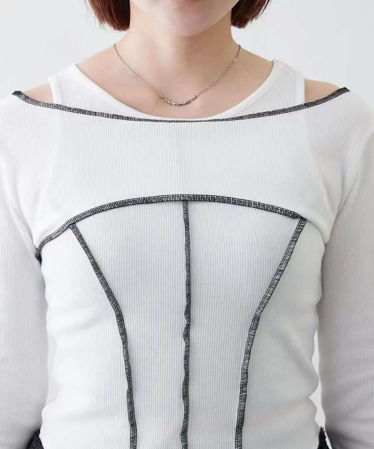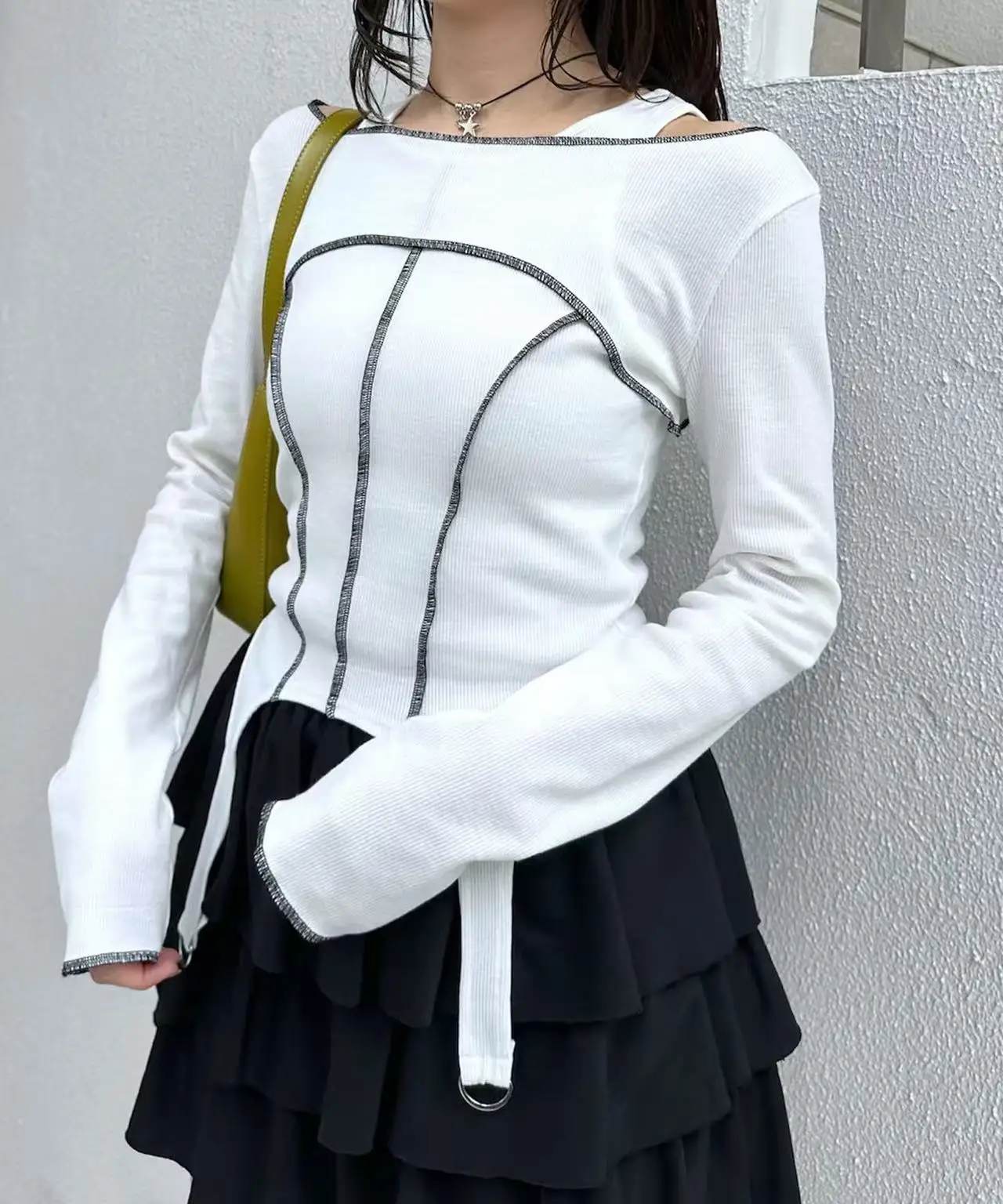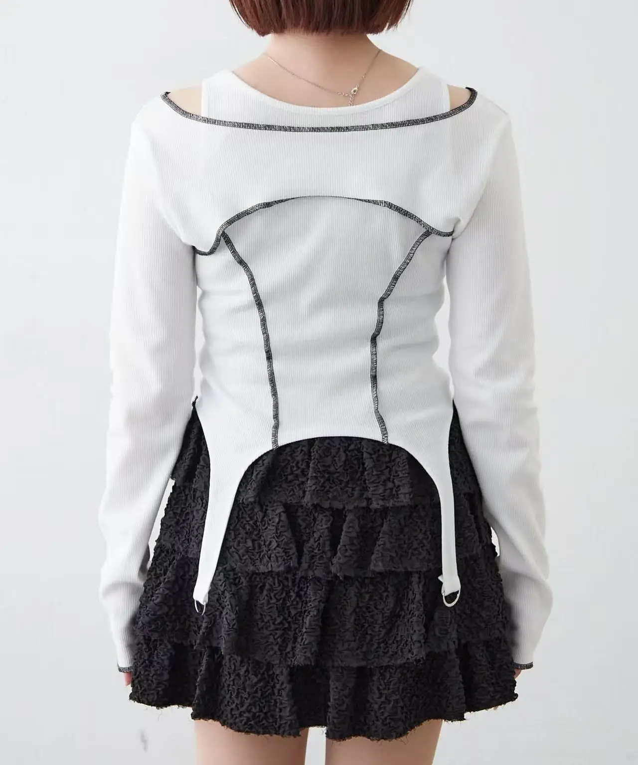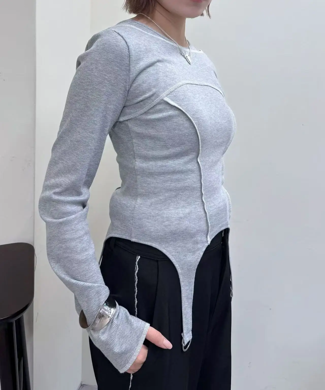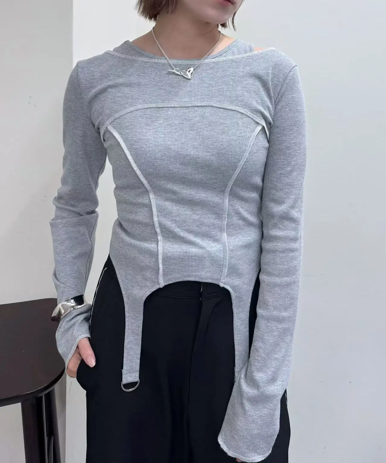 Women's Y2K Korean Street Playful Casual Sexy Cut-Out Long-Sleeve Short Pure Color Slim Fit Square Collar Breathable T-Shirt