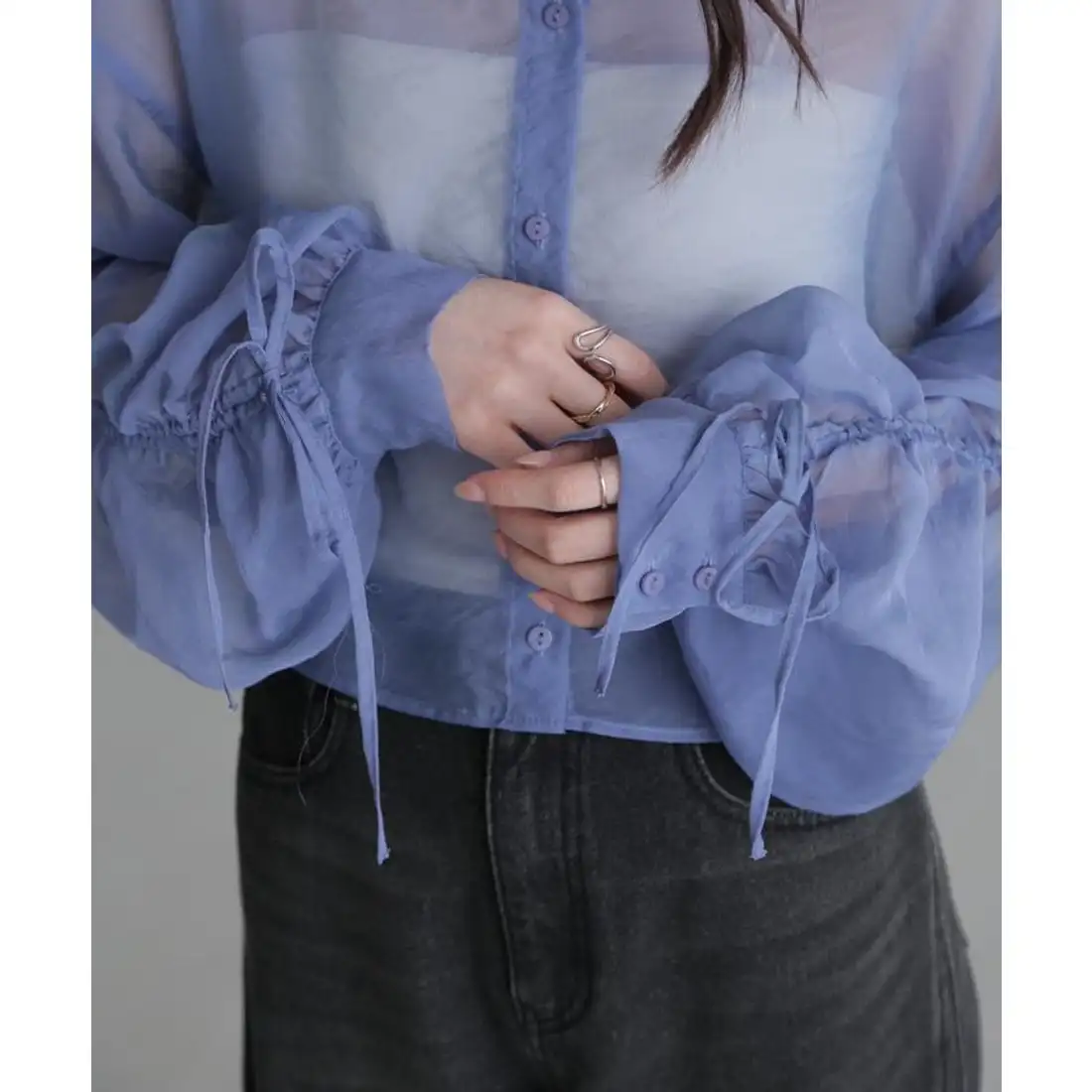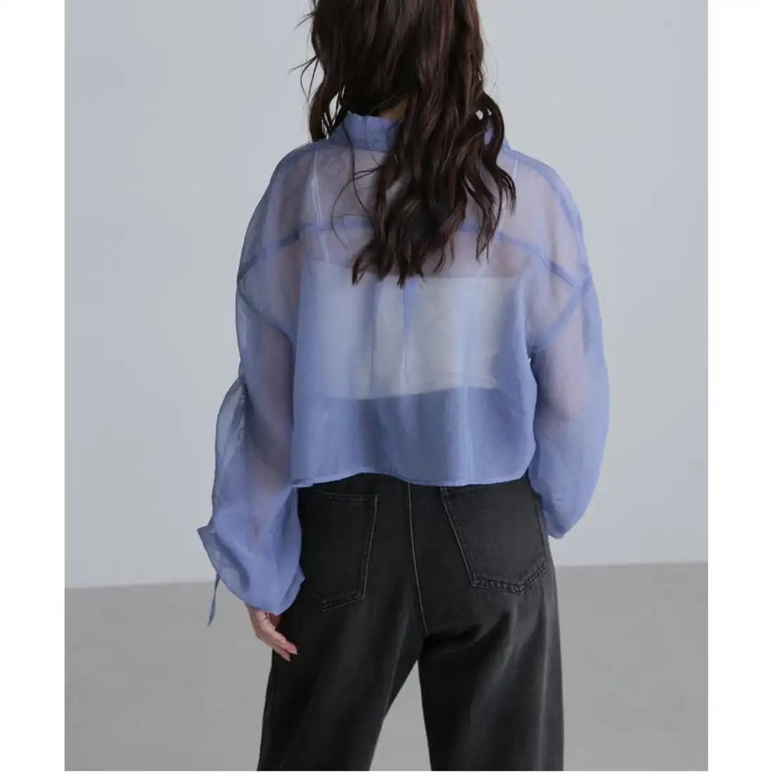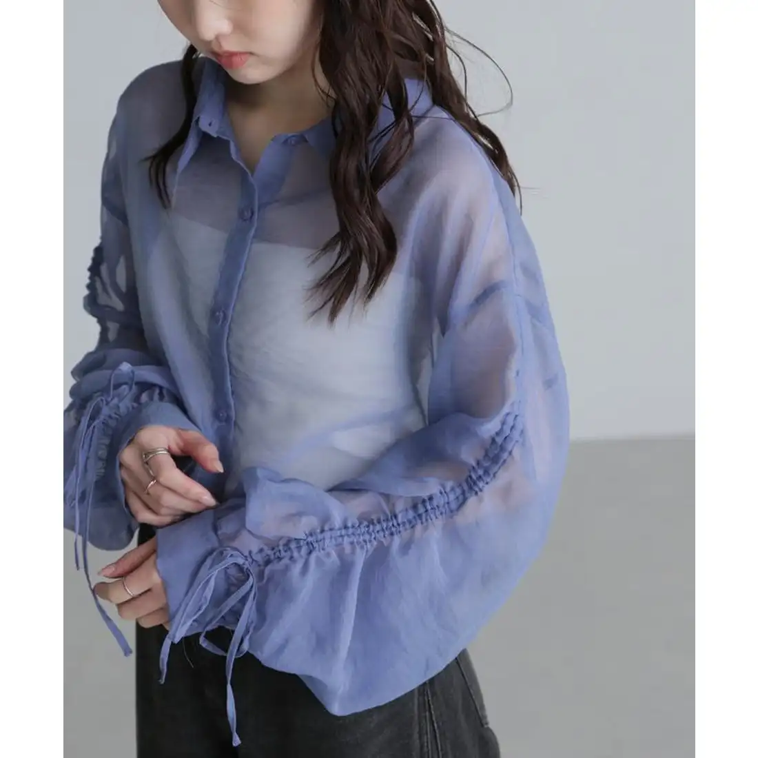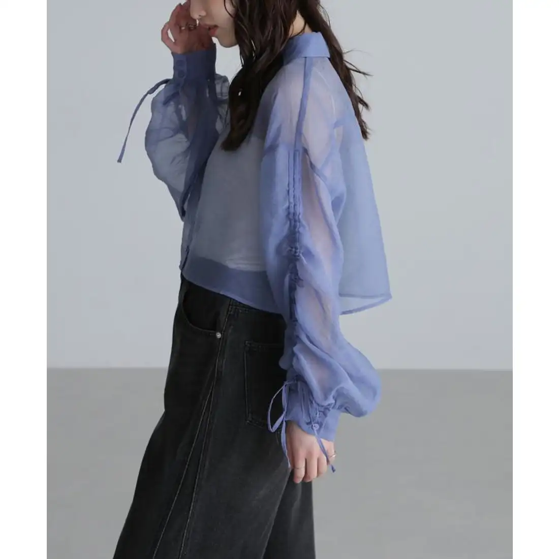 Chic Women's Long-Sleeved Mid-Length Top with Casual Style Plain Dyed Woven Design for Spring Autumn Versatile and Loose Fit