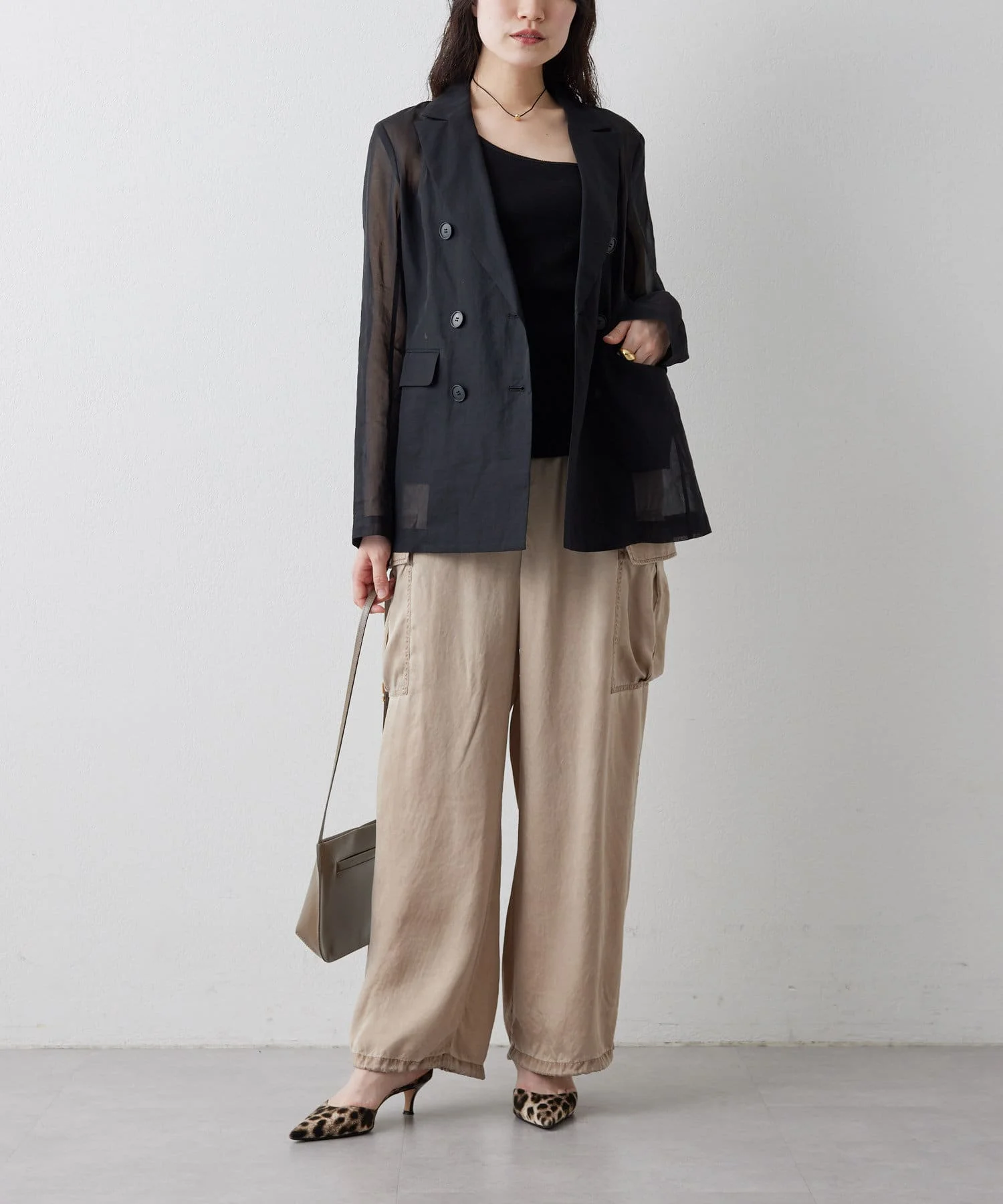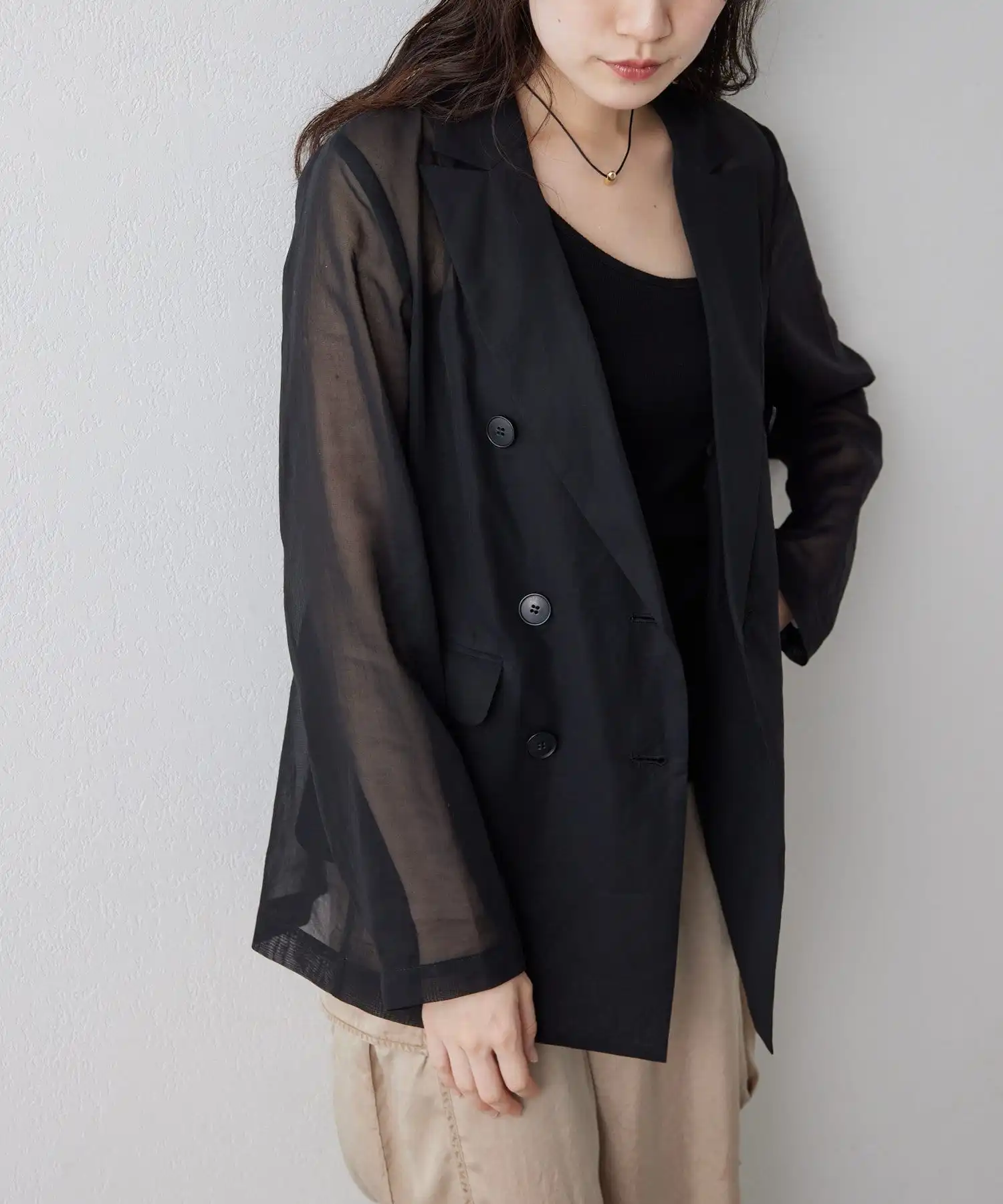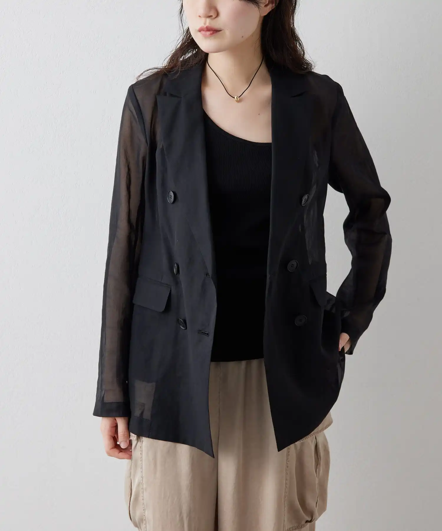 ZYHT 15545 Women's Blouses & Shirts Mint Green Tweed Blazer with Puff Sleeves & Peplum Fit Button-Detail Long Sleeve Jacket