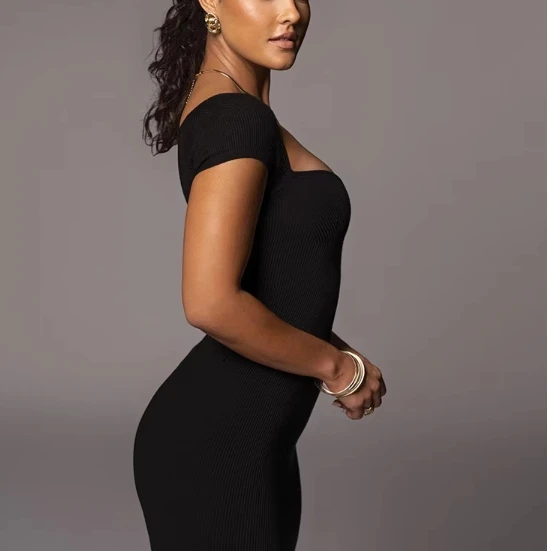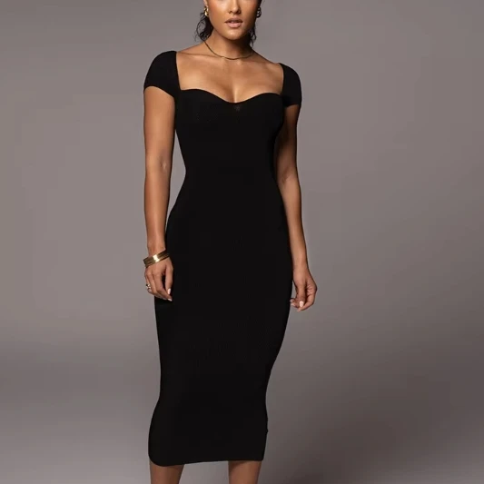 Slim Short Sleeve 2025 Spring Women's Collection Summer Casual Simple Solid Knit Casual Dress