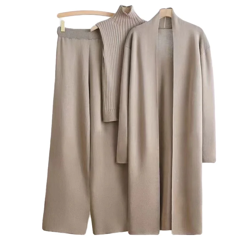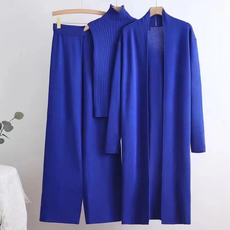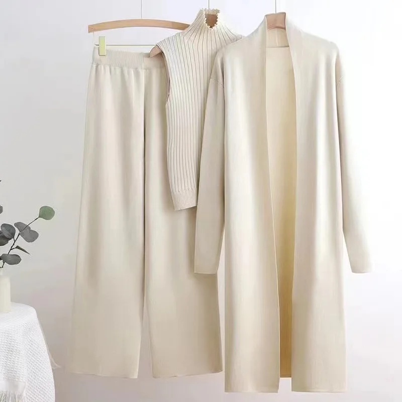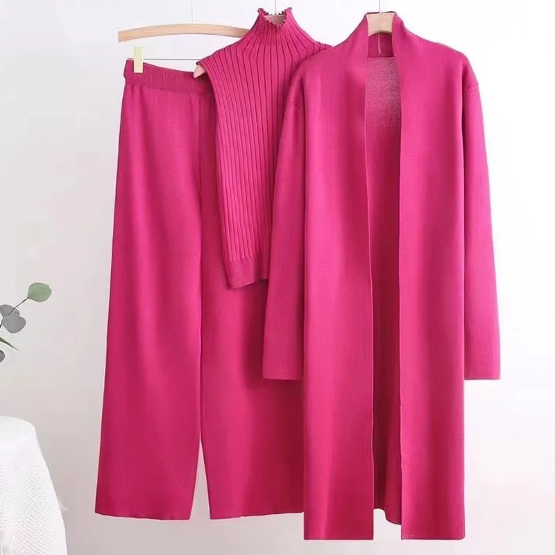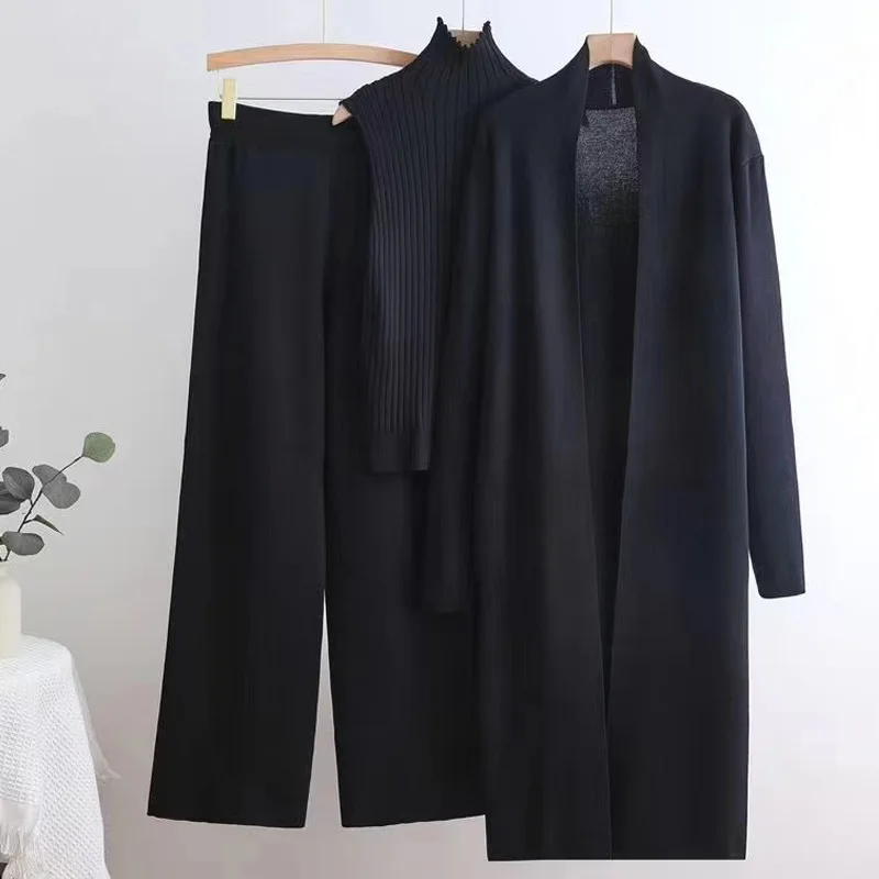 Fashionable and Versatile Three Piece Set with Elegant Temperament, Solid Color Knitted Vest, Cardigan Pants Set