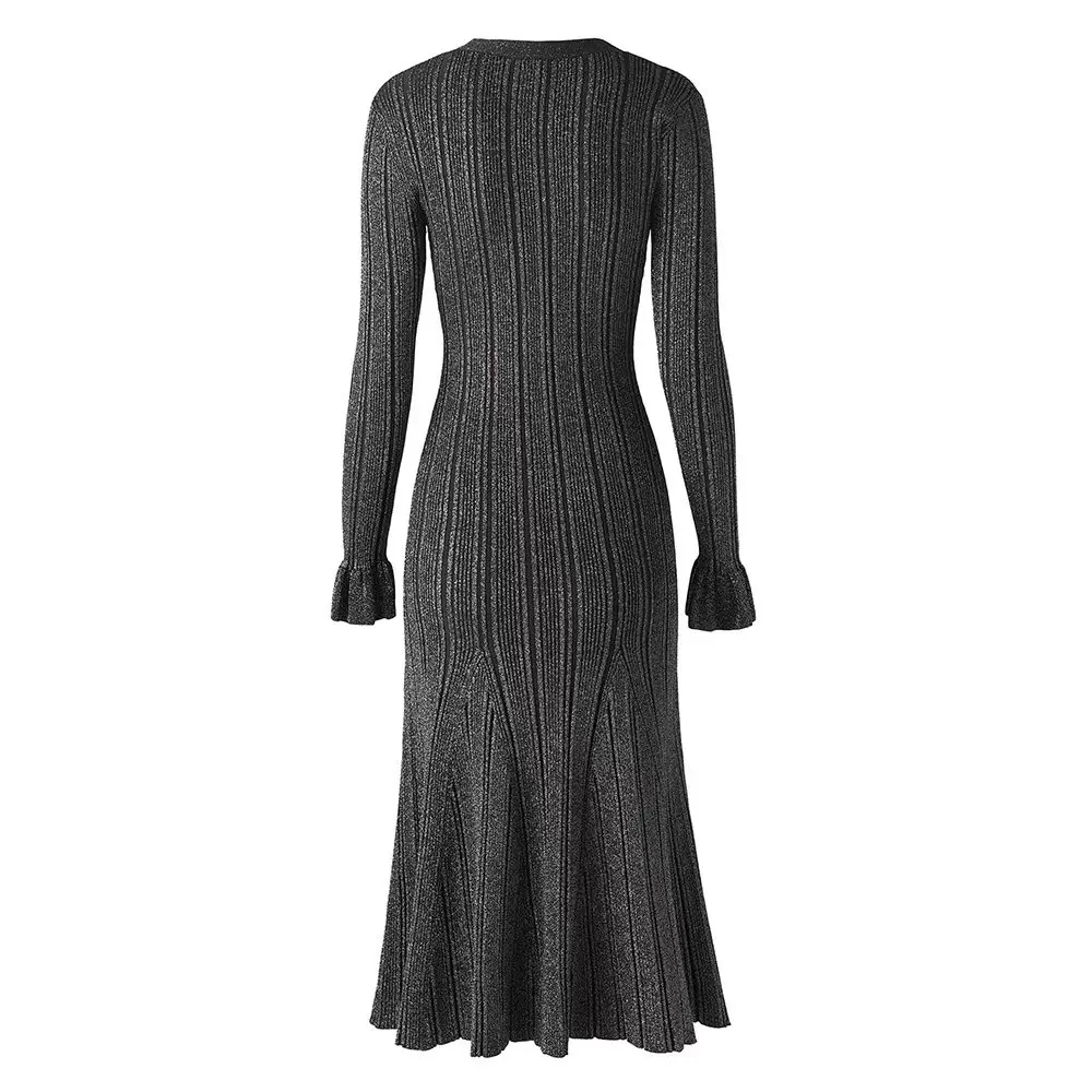Elegant Ladies' Party Dress V-neck Long Sleeved Single Breasted Long Skirt Slim Fit and Slimming Knit Dress