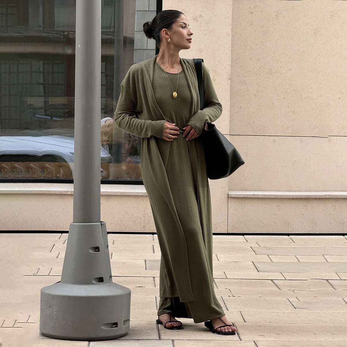Cardigan V Neck Dress Two Piece Knitted Set Ladies Autumn Lounge Blouse Dress Knit Set Women