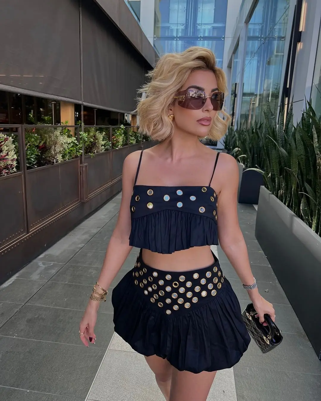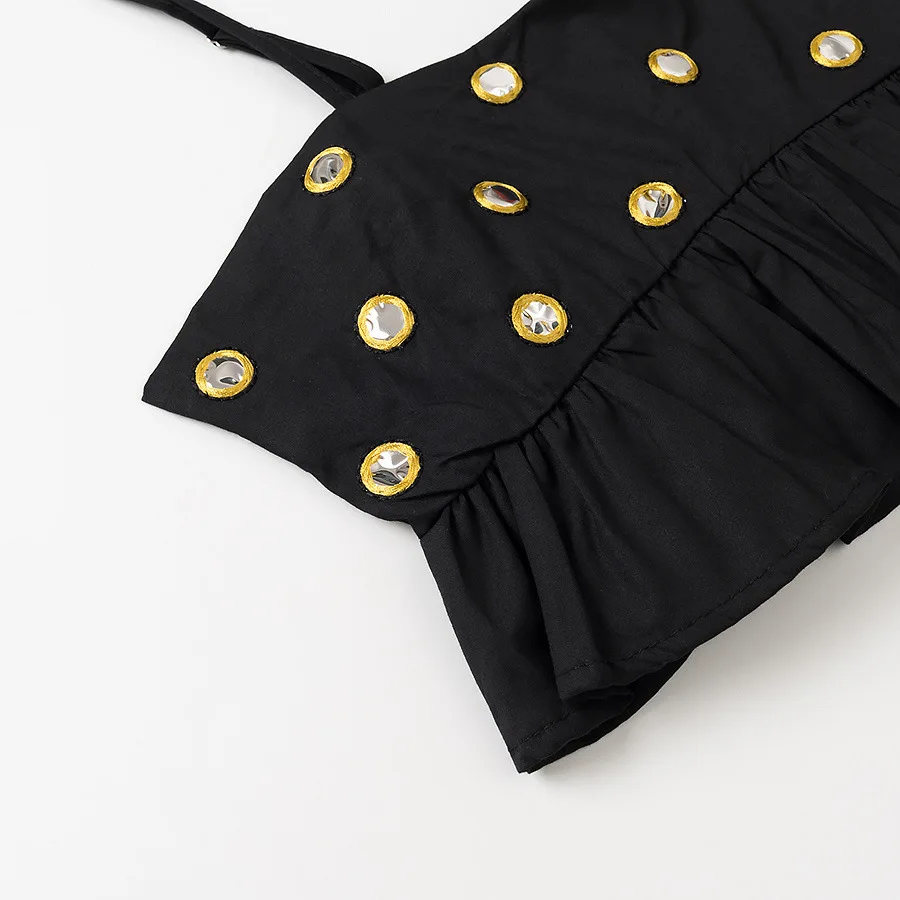 Women Stylish Pleated Skirt Set Summer Sexy Ladies Sequins Tank Top Skirt Two Piece Set